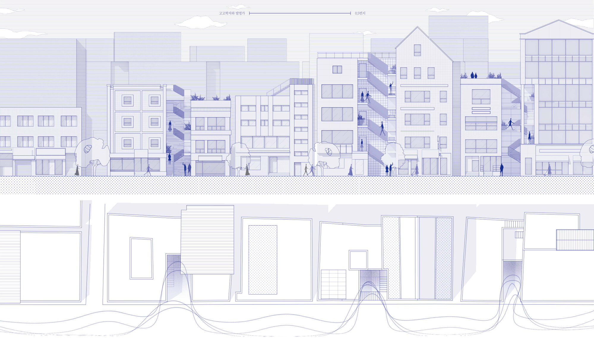 우리의 거리는 어떠한 모습인가. 갖가지 다양한 유형, 형태의 건물들이 즐비해 있지만, 그들 사이에는 방치된 틈새가 있다. 우리는 건물 사이 공간이 개인과 사회 모두에게 이점이 될 수 있을 만한 충분한 잠재력을 가지고 있다고 판단하였고, 미래 도시에서는 이 공간을 다층적인 공간으로써 의미있게 활용하기 위해 새로운 가치를 창출하는 방안이 필요하다고 생각하였다. 따라서 건물 사이 공간의 새로운 활용 방법으로 합리성과 효율성을 확보하면서도 공공성을 강화할 수 있는 접근법을 제안함으로써 도심 속 새로운 공간적 가치를 창출하고자 하였다.