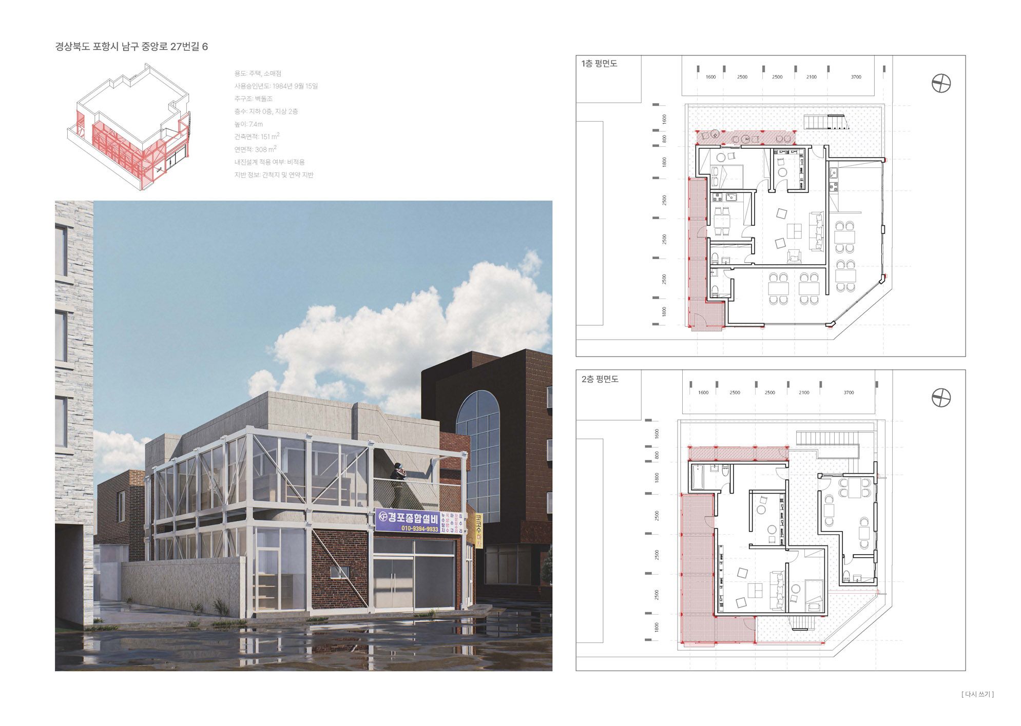 포항의 사례를 기반으로 진행된 본 연구는 전국적으로 적용할 수 있는 해법을 제시한다. 전체 건축물의 50% 이상이 30년을 초과한 상황에서, 불법 증축 문제는 특정 지역에 국한된 것이 아니라 전국적 현상이다. 따라서 철거가 아닌 보존, 보존을 위한 재해석, 그리고 재해석을 통한 확장을 통해 도시의 지속 가능성을 모색해야 한다.