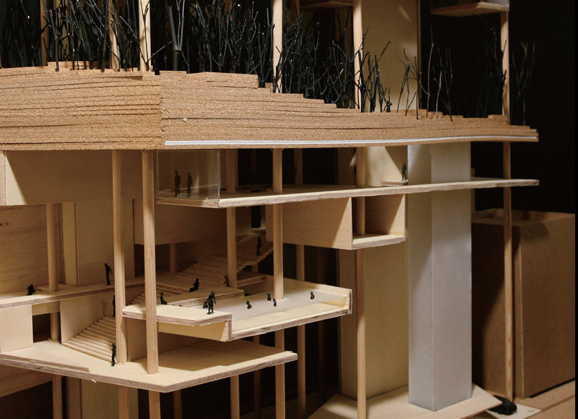 이 위에 조성된 숲은 투숙객들만을 위한 휴식 공간을 제공한다. 숙박층은 숲 위에 떠 있게 해 지상과 단절된 독립된 공간으로 투숙객들에게 프라이버시를 제공한다.