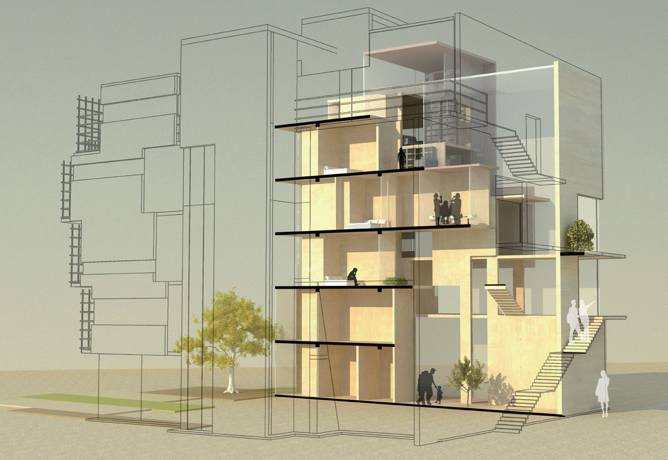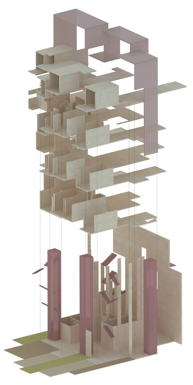 호텔은 단기간 동안 집과 같이 셸터(shelter)의 역할을 해야 한다. 따라서 주 공간은 객실이다. 하지만 기존 호텔의 객실은 사적인 부분을 너무 중요시한 나머지 공적 공간과의 연계성이 약하다. 단지 이분법적으로 나뉘어져 있을 뿐이다. 이러한 공간은 집에서처럼 시공간의 지속력을 짧게 한다.