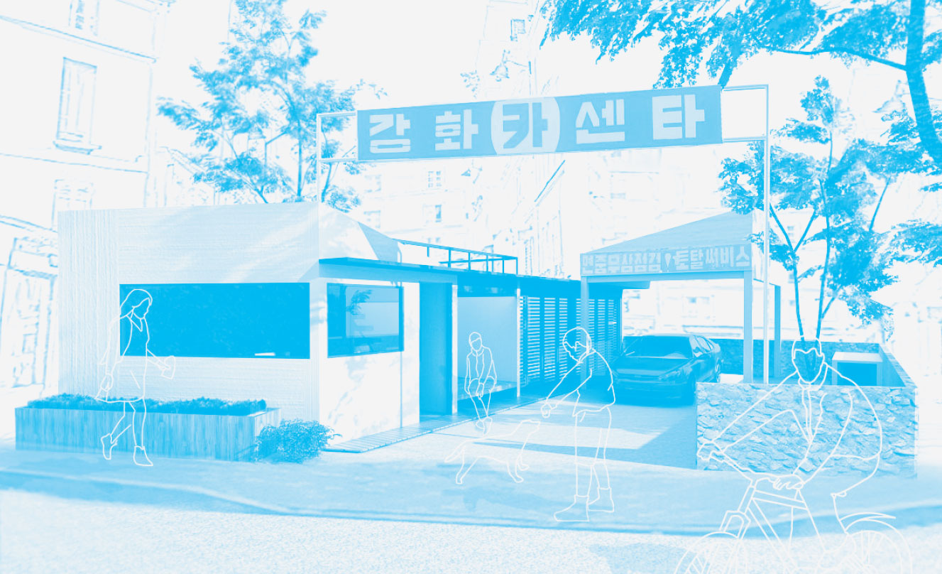강화 카센터는 개방적인 구조임에도 불구하고, 오랫동안 쌓인 물건들로 인해 외부에서 봤을 때 폐쇄적인 공간으로 보였다. 또 공간 구획이 불분명해 효율적인 사용이 어려웠으며, 창고 역시 가건물로 이루어져 보안이 취약했다. 하지만 동시에 건축주의 넘쳐나는 개성을 잘 수용하는 공간이기도 했다. 공간을 꾸미려 한 것은 아니지만 구석구석에서 그의 시간과 역사를 마주할 수 있었다. 모든 것에는 그것이 만들어진 이유가 있었다. 이 프로젝트는 건축주이자 이 공간의 주인인 카센터 아저씨의 일상을 존중하는 공간으로 진행하는 것으로 방향을 정하게 되었다. 누구의 기억 속에나 있었지만 이제는 낡아 잊혀져 가는 그 카센터가 아저씨의 꿈을 담고, 앞으로도 언제나 그 자리에서 이웃들을 부르는 기억이자 기약의 장소가 되었으면 한다.