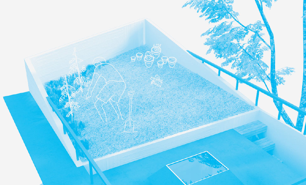 이전에 사용되지 않았던 가게 집의 옥상을 활용해, 물건을 보관하거나 녹지를 꾸릴 수 있게 한다. 좁은 공간에서 지루한 동선을 개선하고, 지면에 쌓인 물품들을 정리할 수 있다.