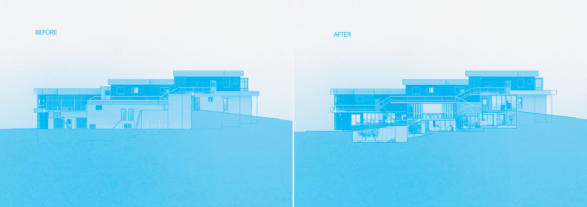원종훈 백윤경 김신혜 뒷부분이 가설 건물처럼 붙어진 것만 빼고 공간을 넣어주었습니다. 자금 문제만 해결되면 실현가능하다고 생각합니다. 전체를 다 공사하지 못해도 뒤편은 가설건물을 짓는 방식으로 예산을 줄일 수 있을 것 같습니다.