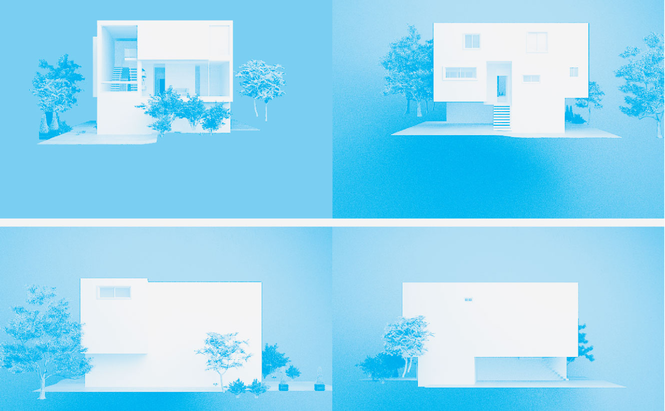 설계된 집의 좌, 우, 앞, 뒤 입면의 모습이다.