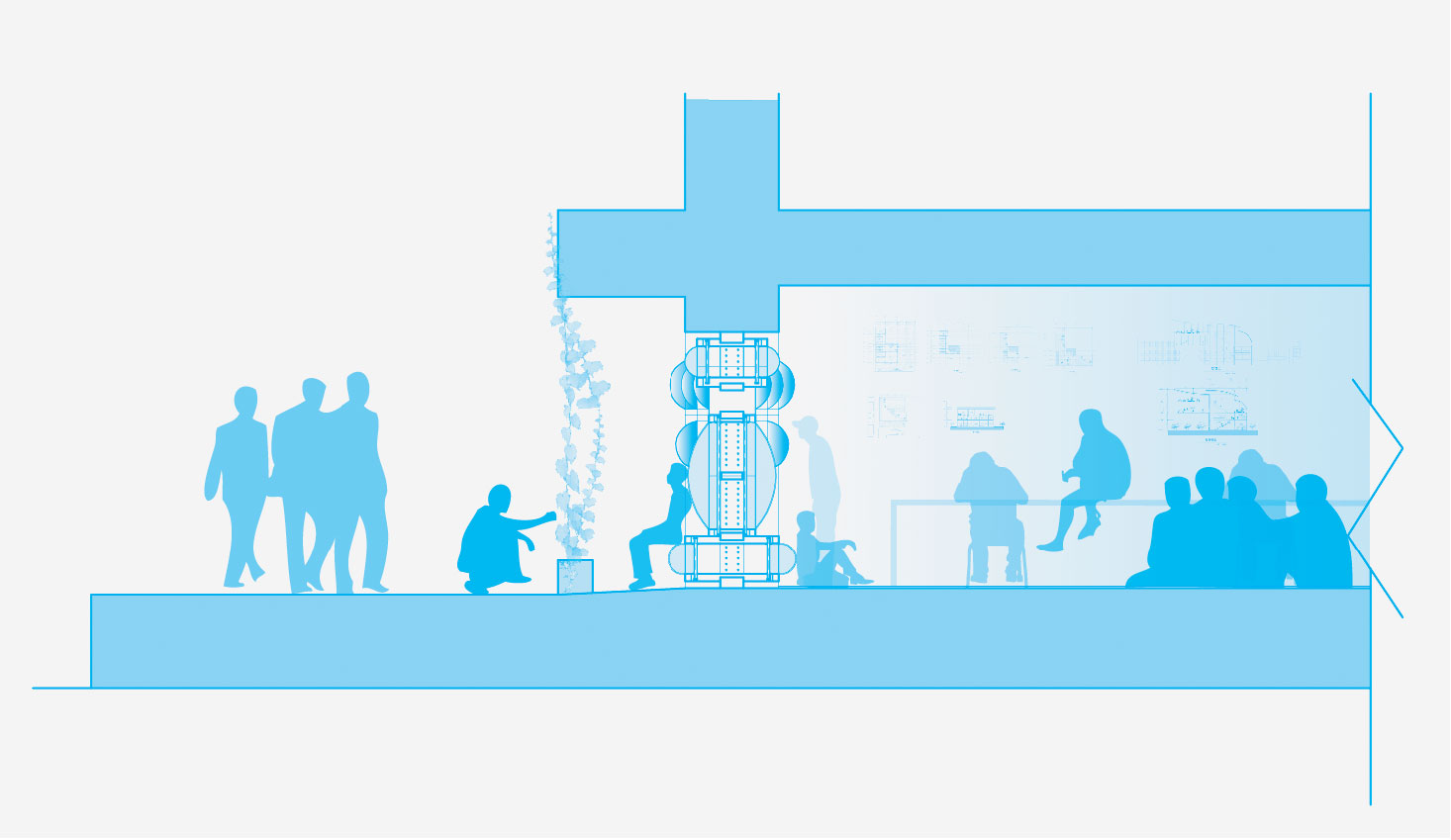 외부의 화단을 통해 외부와의 공간을 구별하며, 그 공간은 튜브를 활용하여 쉼터로 사용한다. 내부는 따뜻하며 토론하는 소리가 새어나가지 않는 완벽한 작업실 공간이 된다.