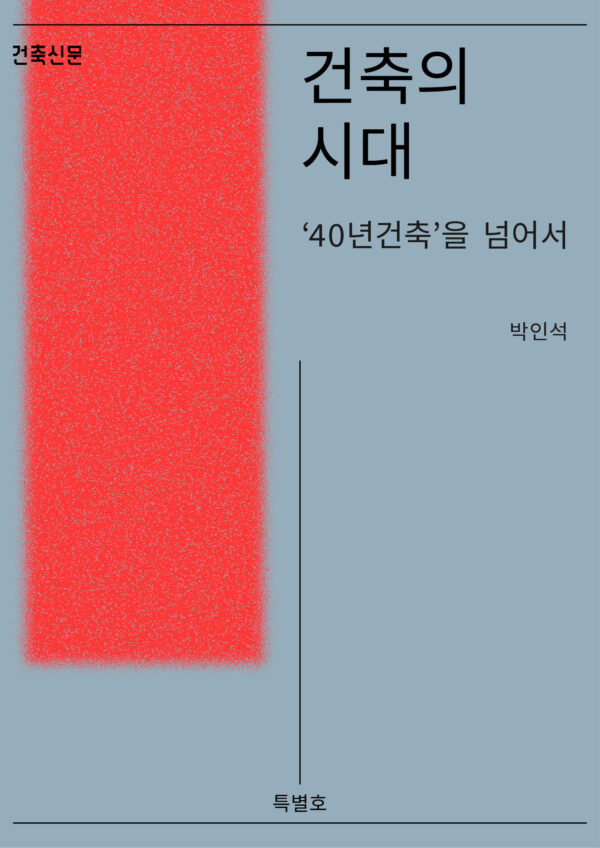 건축신문에서 처음으로 연재를 시작했습니다. ‘건축의 시대’라는 이름 아래 세 편의 글이 실립니다. 1편 ‘40년건축으로 만든 나라’를 시작으로, 2편 ‘부실시공, 공공책임 부재의 귀결’, 3편 ‘건축이 살아야 나라가 산다’로 이어질 예정입니다.
