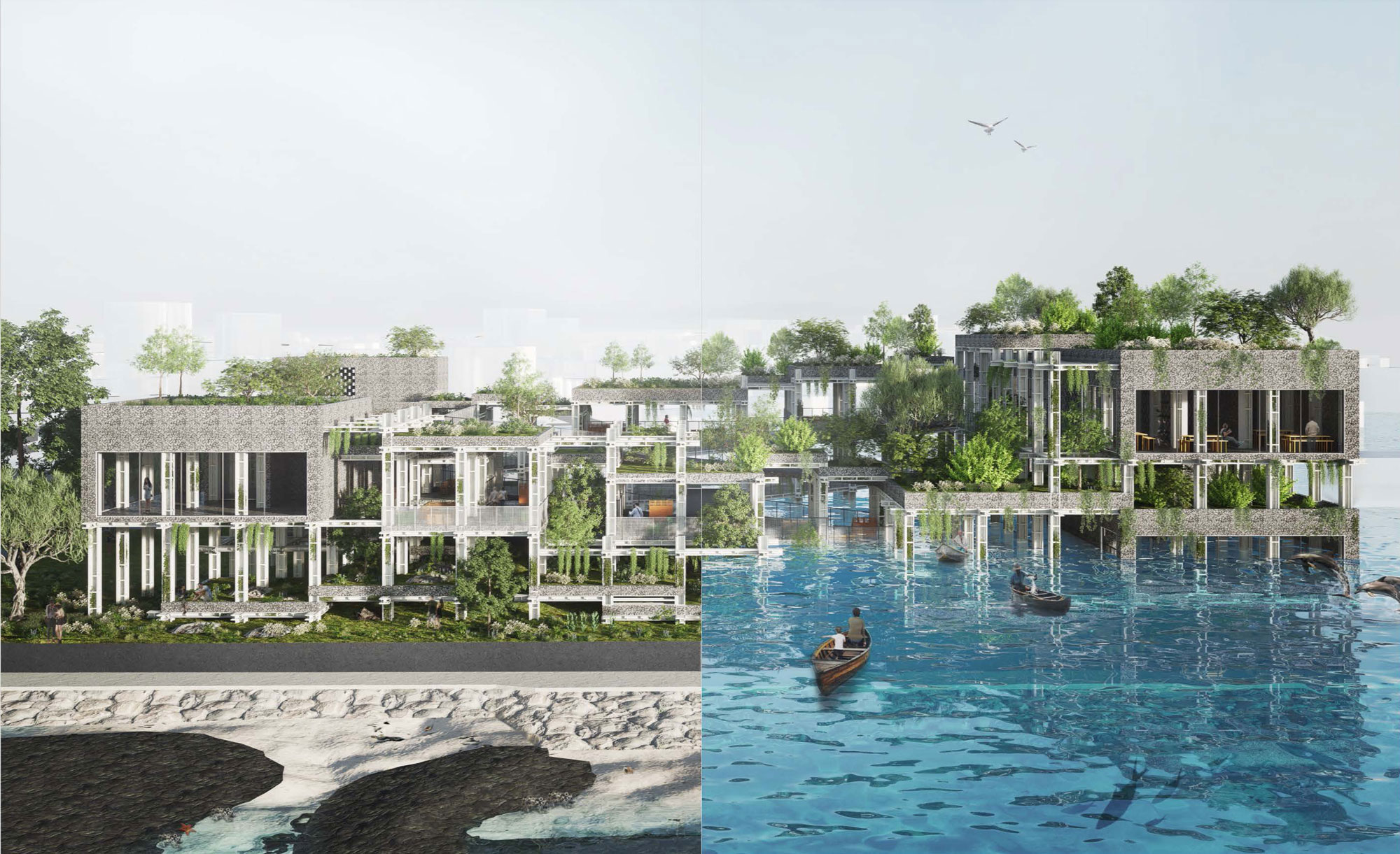 조재원 소라껍데기에 프로젝트를 비유한 점이 흥미로웠다. 소라가 죽은 뒤에 다른 생물이 소라껍데기를 이용하듯, 시간이 흘러 다른 생물의 거주지가 될 수 있는 건축물을 만들었다. 해수면 상승이라는 비극적인 시나리오를 바탕으로 건축이 앞으로 어떤 준비를 해야할 지에 대한 새로운 방향성을 보여줬다.