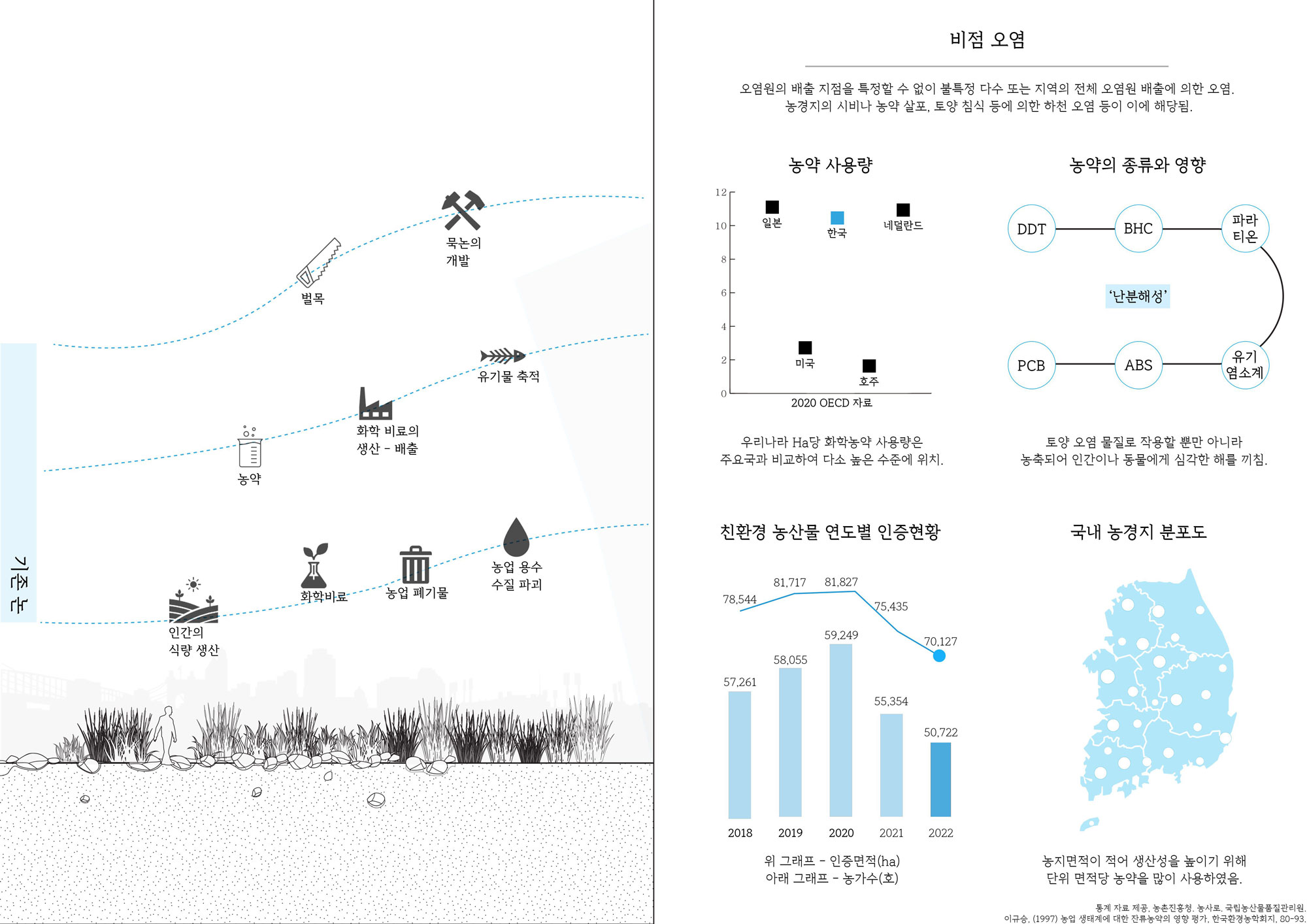 야생적인 공간이란, 생물군의 다양성을 높이는 것과 별개로 인간의 개입이 최소화된 공간이라고 바라보았습니다. 그래서 어쩌면 온전한 야생보다 더 ‘야생적인 공간’을 만들 수 있는 가능성이 있는 곳을 살펴보았습니다. 우리는 ‘인간 식량’의 생산지였던 ‘논’에서 그 가능성을 엿보려고 합니다.