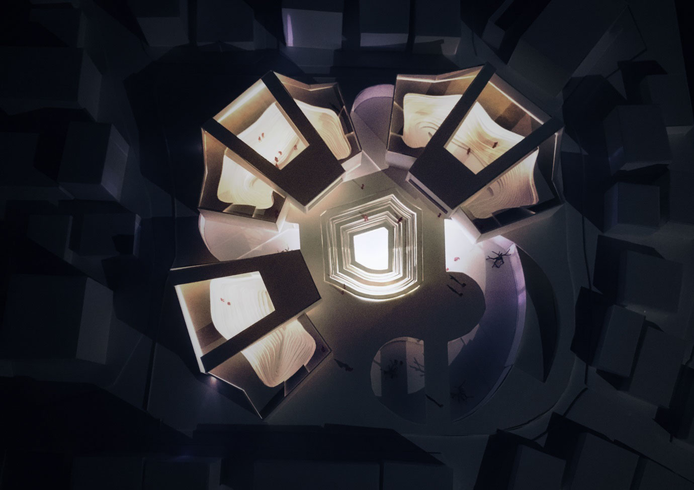 시간거래소가 배치된 매수 상부에 태양광 발전을 위한 패널들이 설치된다. 여기에서 집속된 태양에너지는 하부의 발전시설을 작동시키는데 사용되며, 발전된 전기의 일부는 지하의 수경재배를 위한 타워에, 나머지는 각각의 S-Cluster에 보급된다.