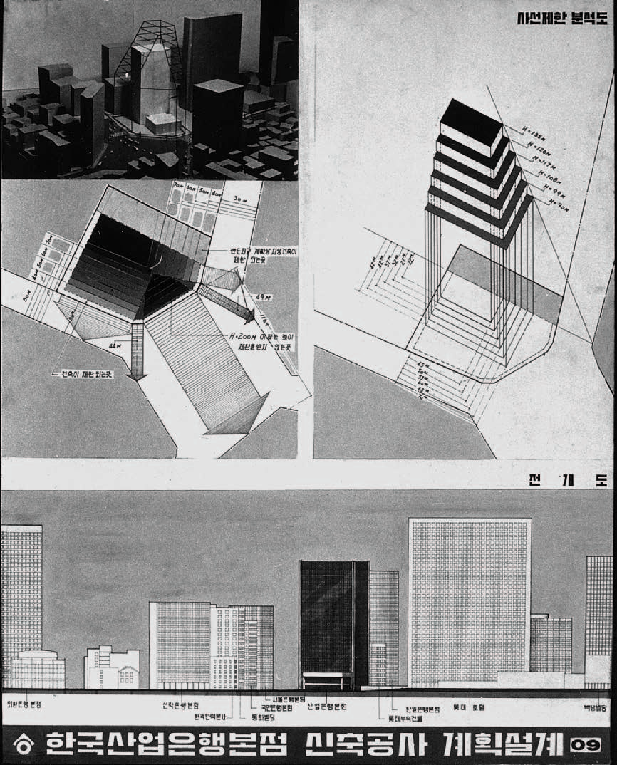 한국산업은행 본점 계획안 1975(을지로), 1977(학동), 1982(여의도)