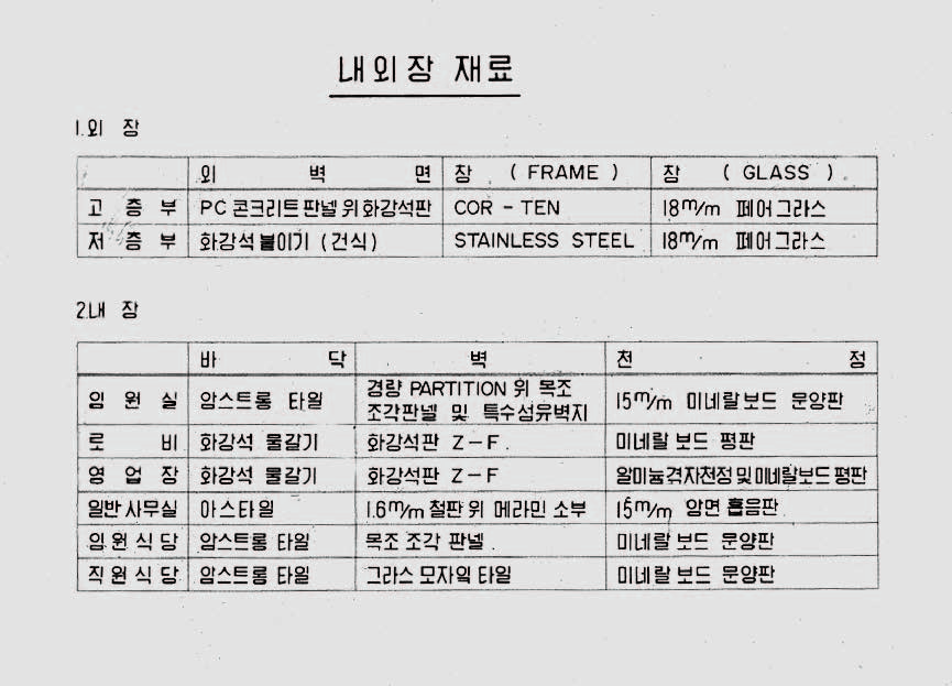 1975년부터 1982년까지 세 차례에 걸쳐 수행한 계획안으로 정림의 은행에 대한 어휘인 영업장의 포디엄과 사무동 타워 부분의 구성이 각기 다른 환경적 특성을 지닌 대지에 일관되게 적용되고 있다. 1975년 현상설계에서 1등 당선된 이래 이전 계획의 변경에 따라 일련의 작업이 수행되었으며, 모두 실현되지는 않았다.