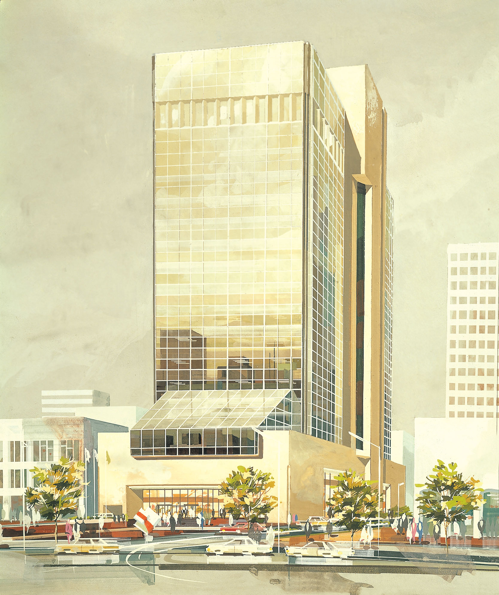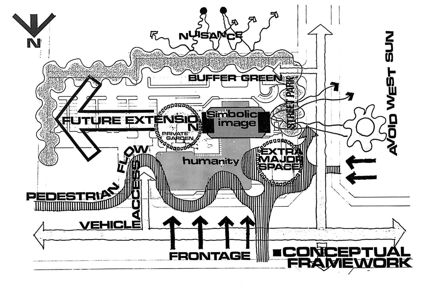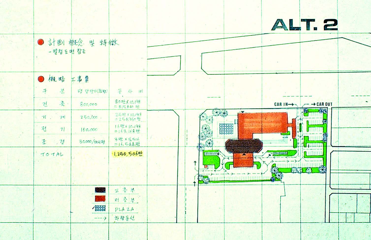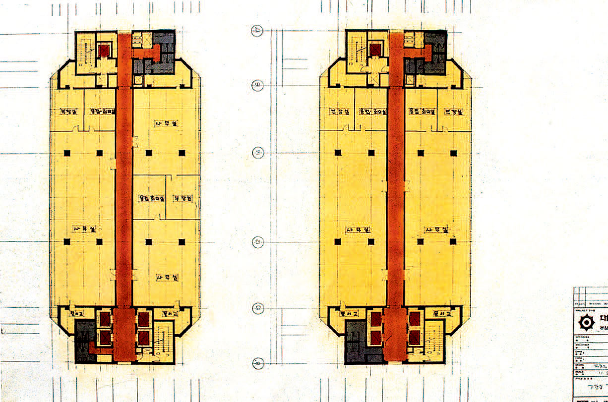 대구시의 새로 계획된 간선도로에 면하고 있으며, 지역 금융과 장소성의 의미를 갖도록 고층화시켜 랜드마크로서 도시 공간의 공공성을 제공토록 했다. 건축 공간에 담겨진 제 활동을 사적, 반사적, 공공적 성격으로 구분하여 내·외부 공간을 구성했으며, 이들은 상호 관입되고 교호되어 공간의 흐름을 적극 표출한다. 대지 내에 적극적인 공공 공간을 확보하고 저층부와 고층부 사이에는 선큰 가든을 두어 대지의 포용력에 순응하는 계획으로 땅과의 밀착성을 높였다. 투명성과 솔리드, 포디엄과 타워의 대비적 요소와 구조 방식과 연결되는 조형은 복합적 구성을 통한 다의적 표현을 추구하고 있다.