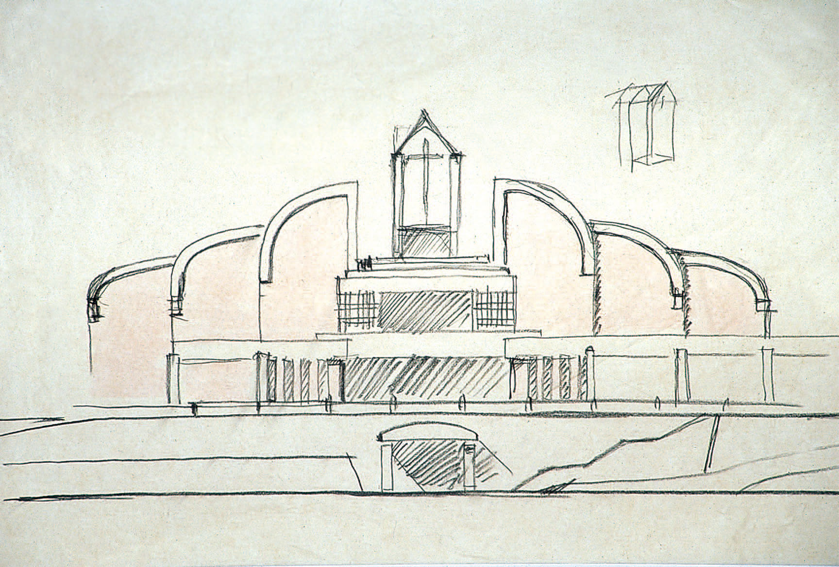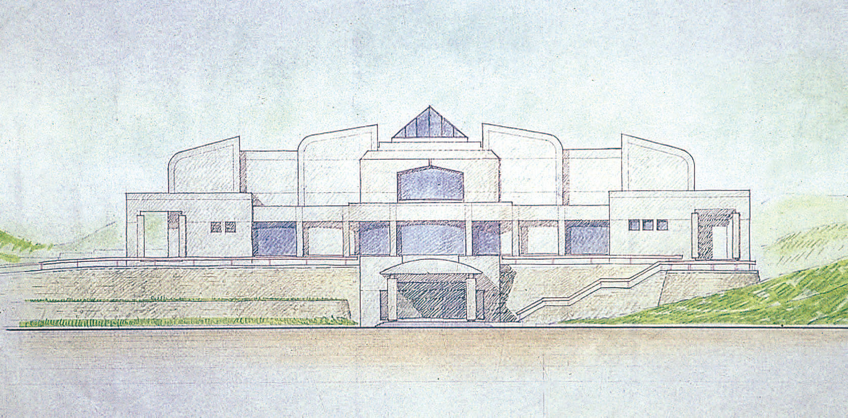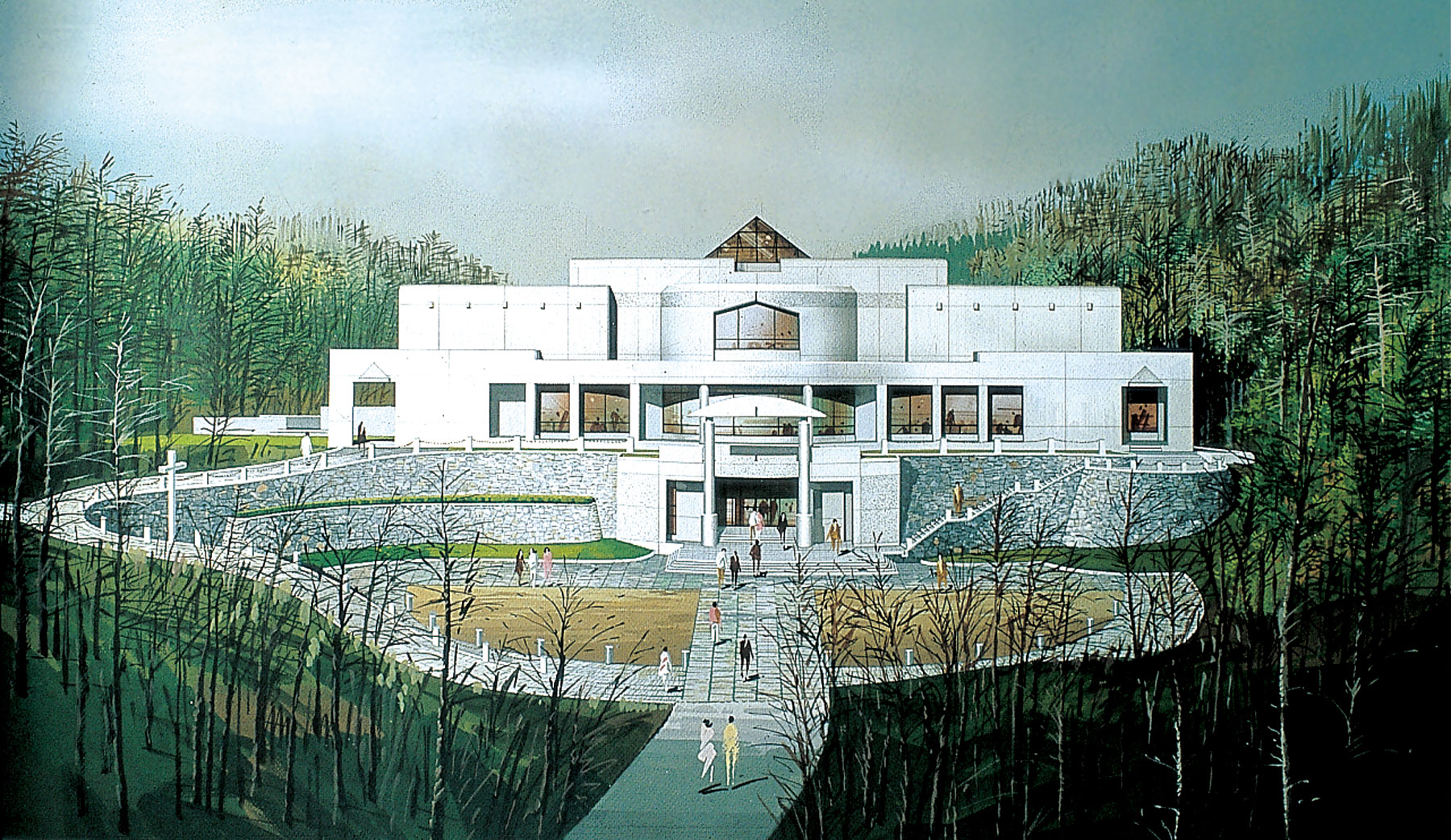 건축 계획의 주제는 점증의 개념과 구심적 의미인데, 점증의 개념은 공간적 표현으로는 완만한 오름 경사를 갖는 진입로를 전이 공간으로 하여 전면 광장에 이르게 되며, 이어지는 축선 상의 입구를 통해 진입하게 되면 건물의 중심부인 홀이 나타나며 이 공간은 수직적 형태를 가지면서 위로 열려 하늘과 만난다.