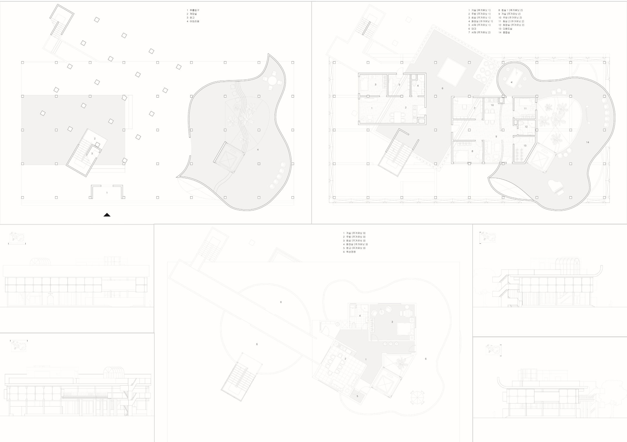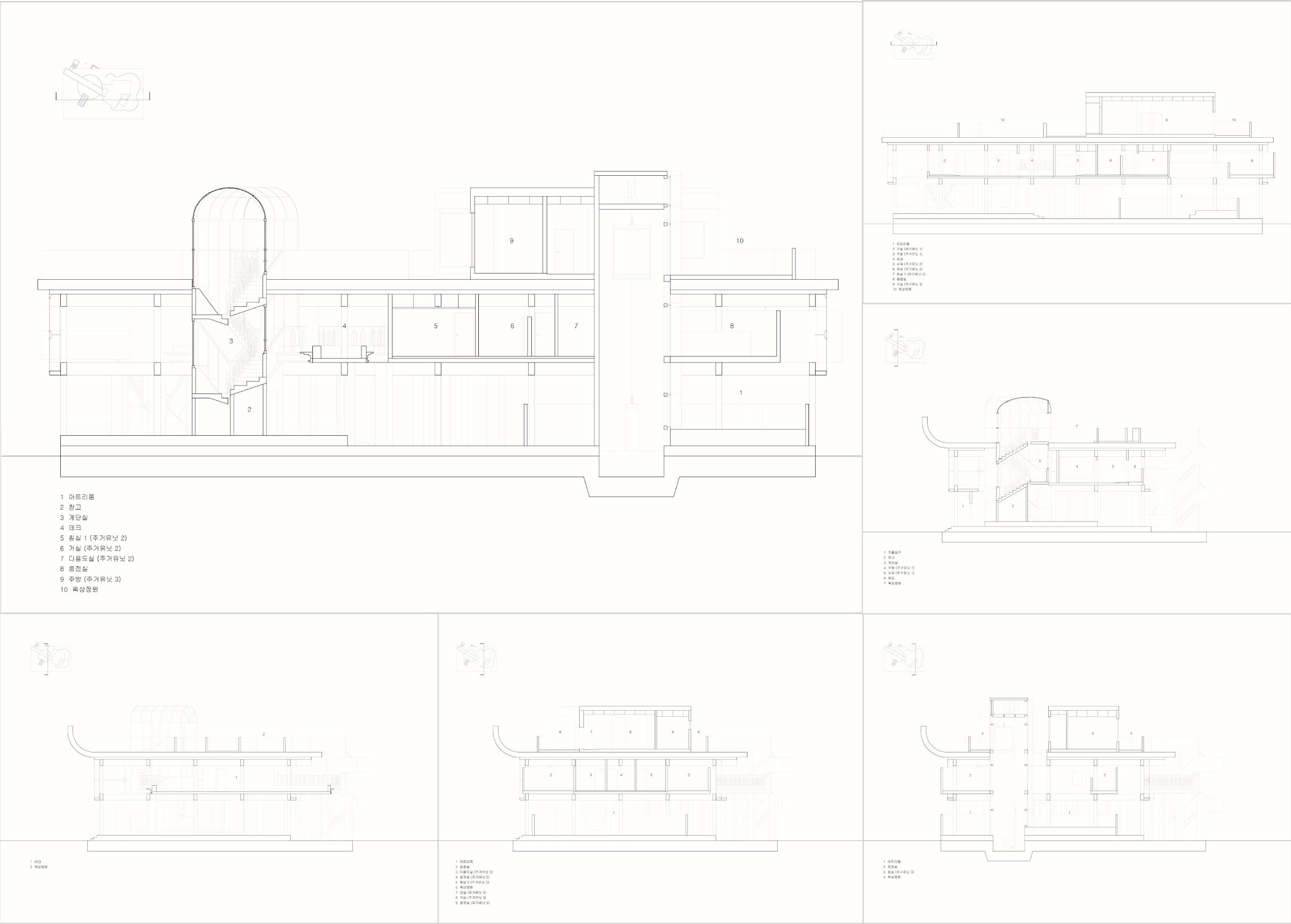 이석주 최인학 조휘준 계획안의 물리적인 부분들보다는 한국성이라는 의미 자체에 집중했다. 건축적인 부분 관해서는 모형을 통해 설명할 수 있다. 평면에서 보이는 것들, 예를 들어 빌라 데크와 교차하는 아파트의 평면이 바닥 패턴을 달리하는 등 방법으로 요소의 충돌만이 전부가 아닌, 충돌하는 과정, 접점에서의 디테일을 어떻게 풀어낼 것인가에 대한 고민도 했었다.