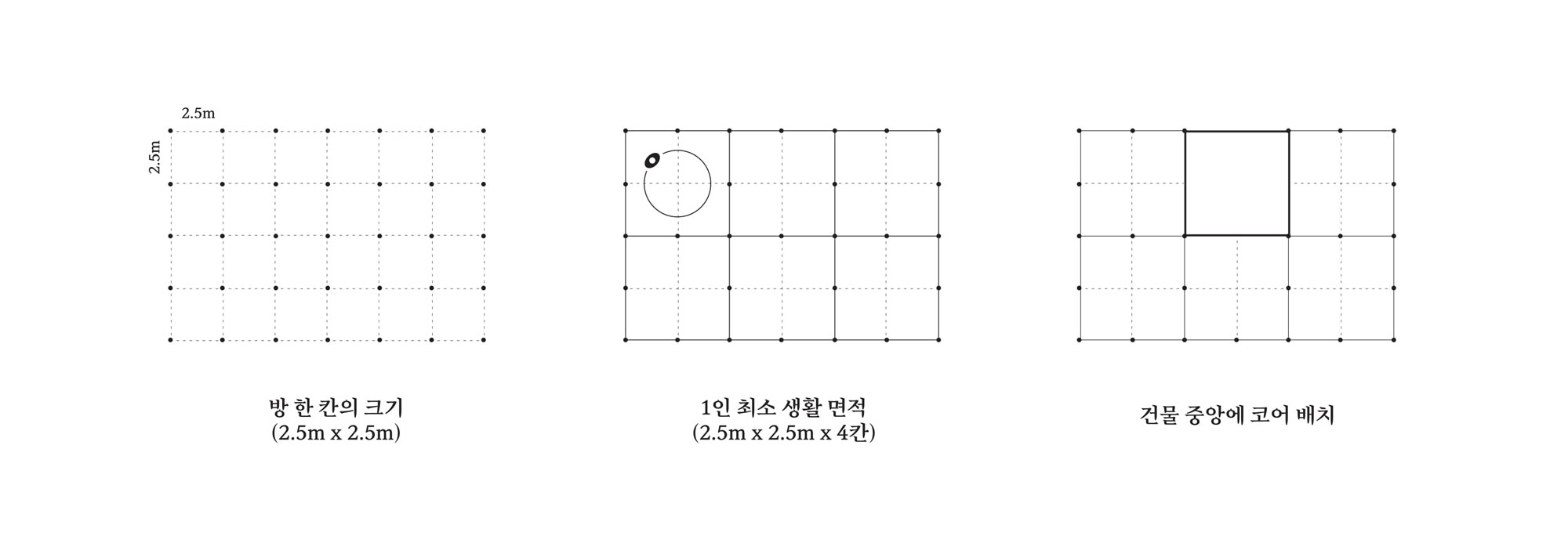 김효영 비용을 들여서 이 건물을 짓는 사람의 입장에서는 저 공간을 모두 임대해서 꽉 채우는 것이 목적일텐데, 통로를 임차인 별로 구성하고, 화장실과 주방을 공용으로 하면 먼저 점유한 사람이 통로를 막아버리는 순간에 이 시스템이 작동하지 않을 것 같다.