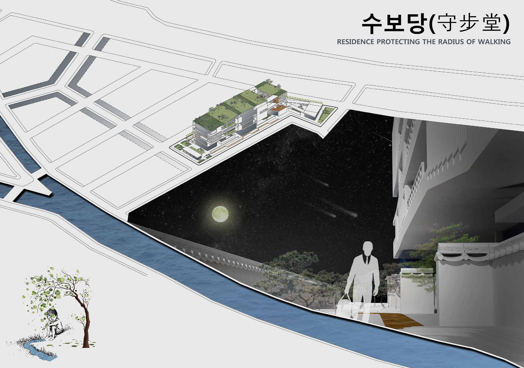 고된 몸을 이끌고 대지에 들어서서 손에 닿을 듯한 집과 달을 바라보는 설렘, 흙 길을 밟고 흙 냄새, 풀내음을 맡는 등 자연을 느끼면서 집에 들어갔으면 한다. 원하면 엘리베이터가 아닌, 지붕 층까지 인도해 주는 슬로프를 느릿 느릿 밟으며, 달을 쫓고 타인이 아닌 이웃이 사는 냄새를 맡으며 집으로 향할 수도 있다. 이런 공간은 다공성에 대해 고민을 하면서 자연스레 풀렸다. 고층건물에 빼앗긴 평면 공간을 지붕 층까지 슬로프를 연결해서 되찾았고 슬로프를 연결하며 생기는 풍부한 외부 공간은 다양한 프로그램을 담고 풍요로운 삶을 선물할 것이다.