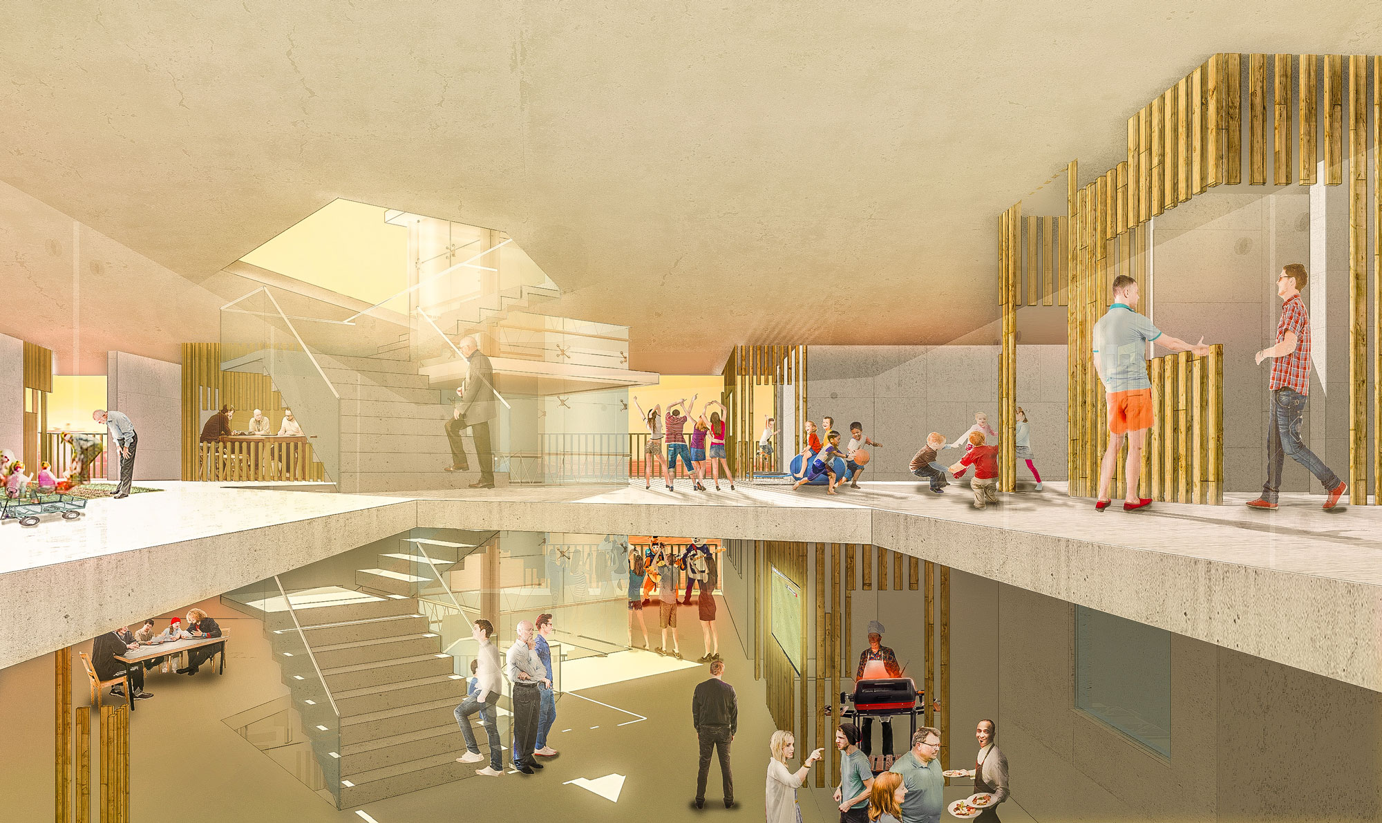 사적 영역인 ‘주거’와 개별 여가 활동에 대응하는 ‘툇마루’, 이러한 활동이 연결되는 ‘공공마당’이 세 요소가 이루는 모폴로지 (morphology)를 중첩해 건축물을 구성했고 이러한 구성에서 다양한 활동은 특정 주제를 가지고 공동체로 발전할 것이다. 물론, 보편적 주거 환경을 제시하는 것이 목표이기 때문에 각 툇마루가 대응하는 활동은 고정되지 않는다. 즉, 서로 연결되는 커뮤니티가 유동적으로 변하는 것이다.