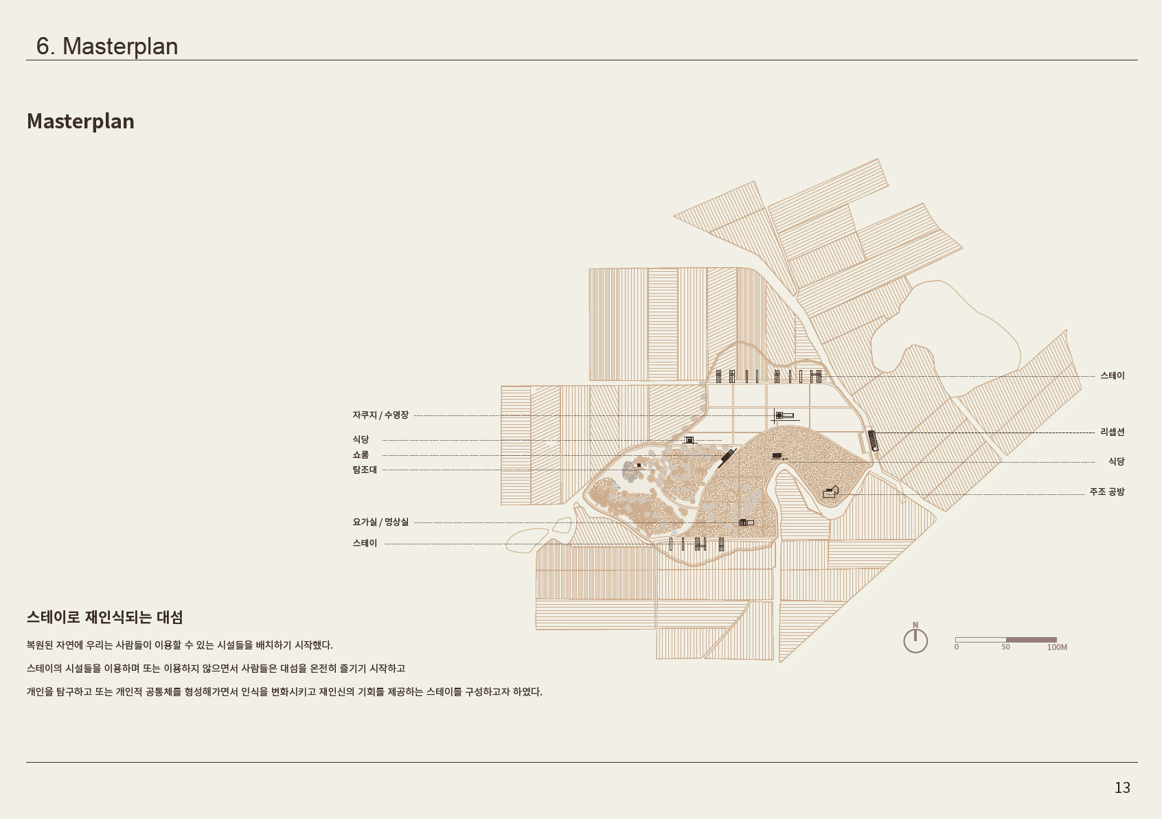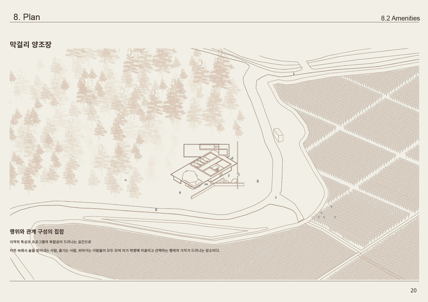 • 요가/명상공간: 대지와 논의 수평선과 마주하는 곳으로 정적이면서 가변적인 공용공간으로서 함께하거나 혼자 사색하는 공간으로 제안한다.