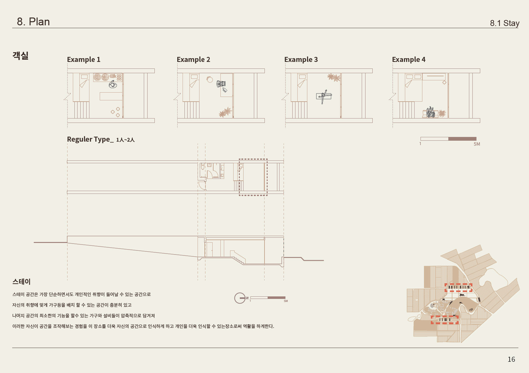 자신의 취향이 존중받길 원하고, 그러한 취향을 드러내길 원하는 사람이 더 많아진다면 개인의 선택이 행위로 이어지고, 그러한 행위가 관계를 만들어내는 과정이 여행에도 반영되면 좋겠다고 생각했다. 단지 어떤 여행지에 가서 단편적인 경험을 하고 끝나는 것이 아니라, 상호보완적으로 서로 주고 받으며 변화하는 스테이를 설계하고 그에 맞는 여행법을 제안하고자 하였다.