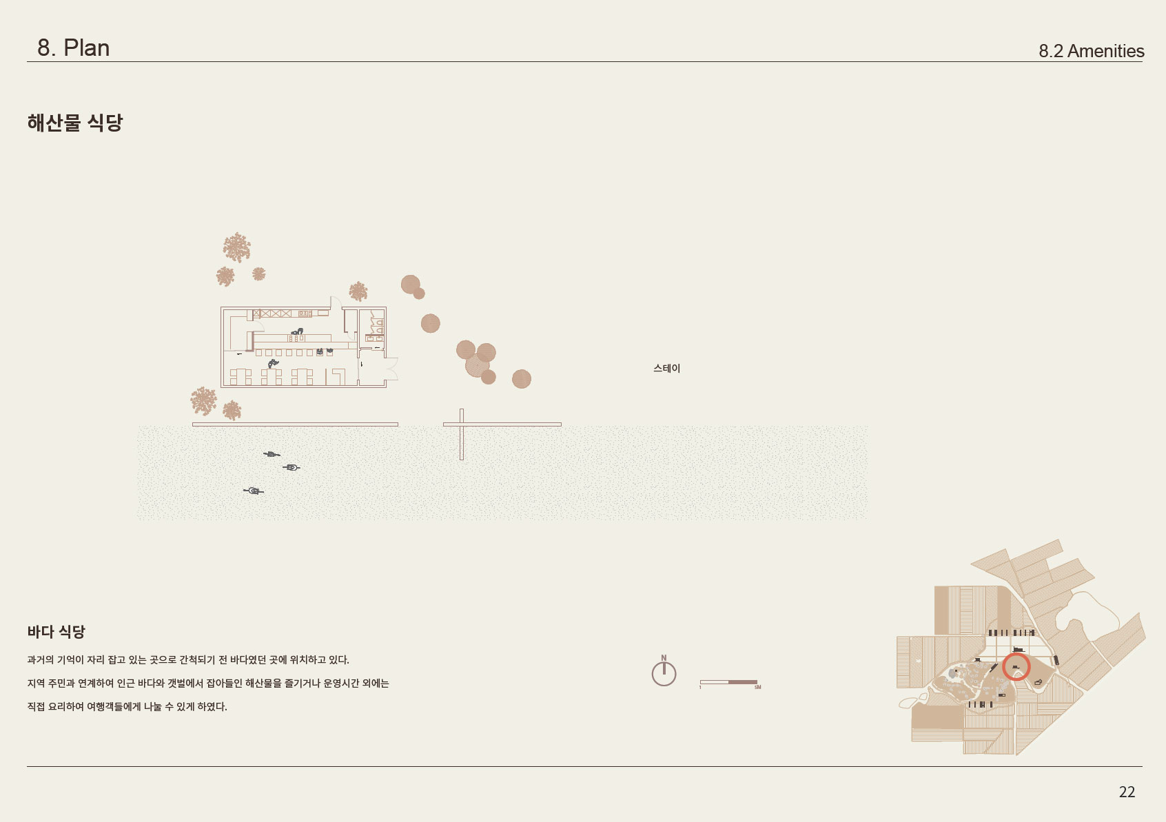 서산이라는 도시는 다양한 관광자원이 있기는 하지만 교통발달의 부재로 많이 발길이 많이 닿지 않고 있다. 서산은 산, 바다, 들, 갯벌등 우리나라에서 볼수 있는 많은 자연환경을 압축적으로 경험할 수 있으며 이로 인해 다양한 식자재가 생산되고 경험 할 수 있는 위치에 있다. 이러한 서산의 다양성을 경험하고 선택하게 하여 우리의 인식을 확장시켜 줄 수 있는 장소로서 활용해 보고자 한다.
