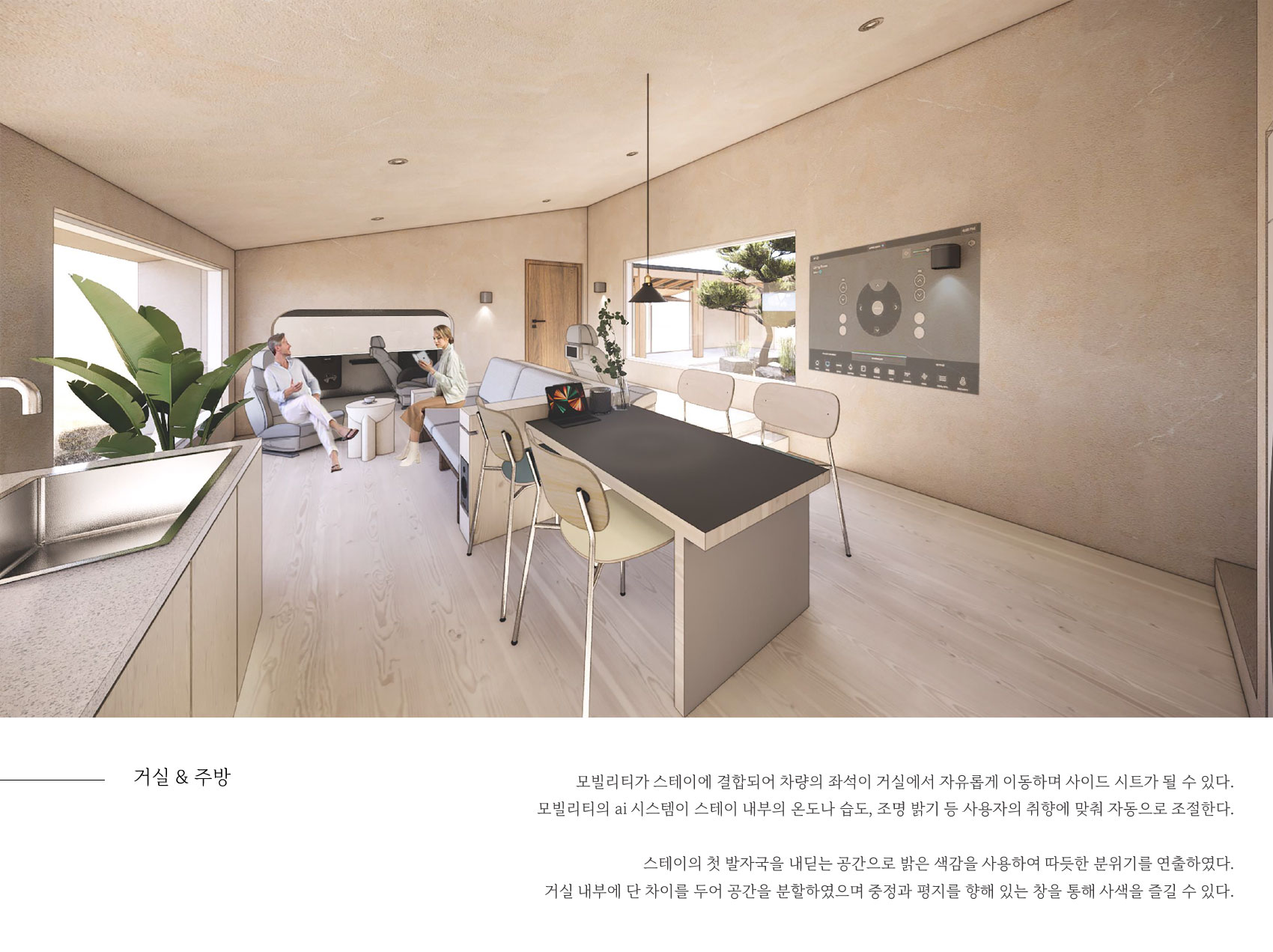 모빌리티 기술의 발전으로 우리는 더욱 쉽게 다른 공간으로 이동할 수 있으며 완전히 새로운 공간에도 자신에게 최적화된 공간을 연결할 수 있게 되었다. 때문에 개인 자동차를 통해 여행하는 사람들의 수는 늘어나고, 운전의 피로감이 없기에 도시에서 벗어나 자연을 향해 떠나는 사람들이 늘어날 것이다. 또한 개개인의 취향이 담긴 뮤직, 유튜브 채널 등의 선호를 차량이 인식하여 AI 시스템과 IOT 시스템이 적용되어 개인의 선호가 담긴 노래, 영상을 재생해 주며 편의성을 도모할 것이다. 우리는 이들을 모터리스트라 이름 붙이고 이들을 위한 공간을 설계하고자 했다.