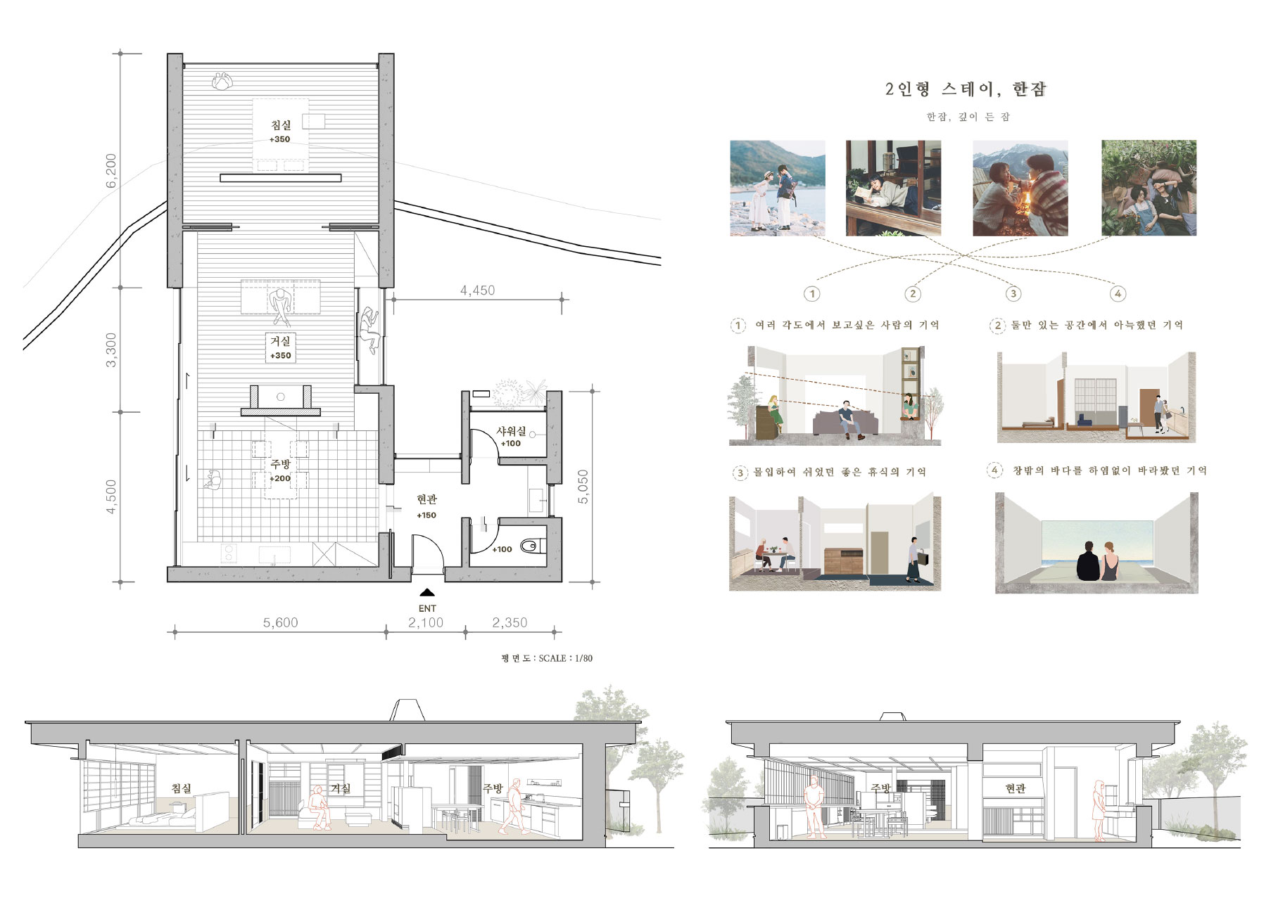 박중현 조름섬이라는 이름을 가진 섬을 발견한 것부터 시작해서 스토리를 단단하게 잘 만들어온 것 같다. 호스트의 존재를 평면에 넣고 건물에 배치하여 이야기를 풀어냈는데, 이 스테이에서 호스트의 역할을 어떻게 생각하는지 궁금하다.