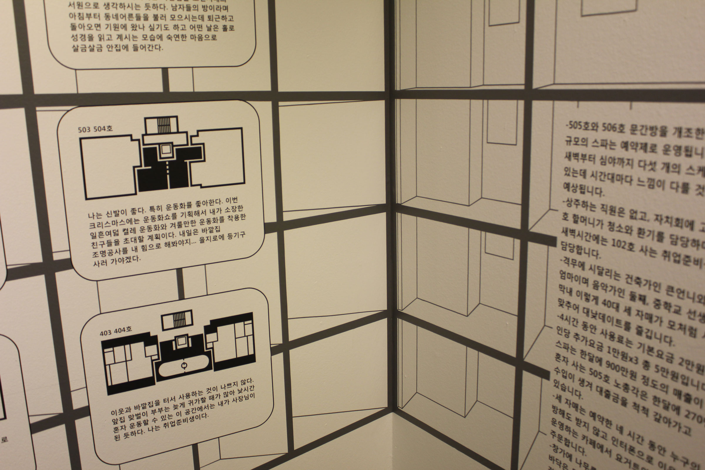 우리는 ‘주거 공간=사적 공간’이라는 절대적 믿음에 의문을 제기한다. 부부와 자녀가 동거하는 4인 가족 기준의 해체와 1인 가구의 증가, 동호인 주택과 셰어하우스와 같은 다양한 주거 형식에 대한 관심은 사적 공간을 절대화하는 관념에 대해 문제를 제기할 수 있는 근거를 마련해 주었다.