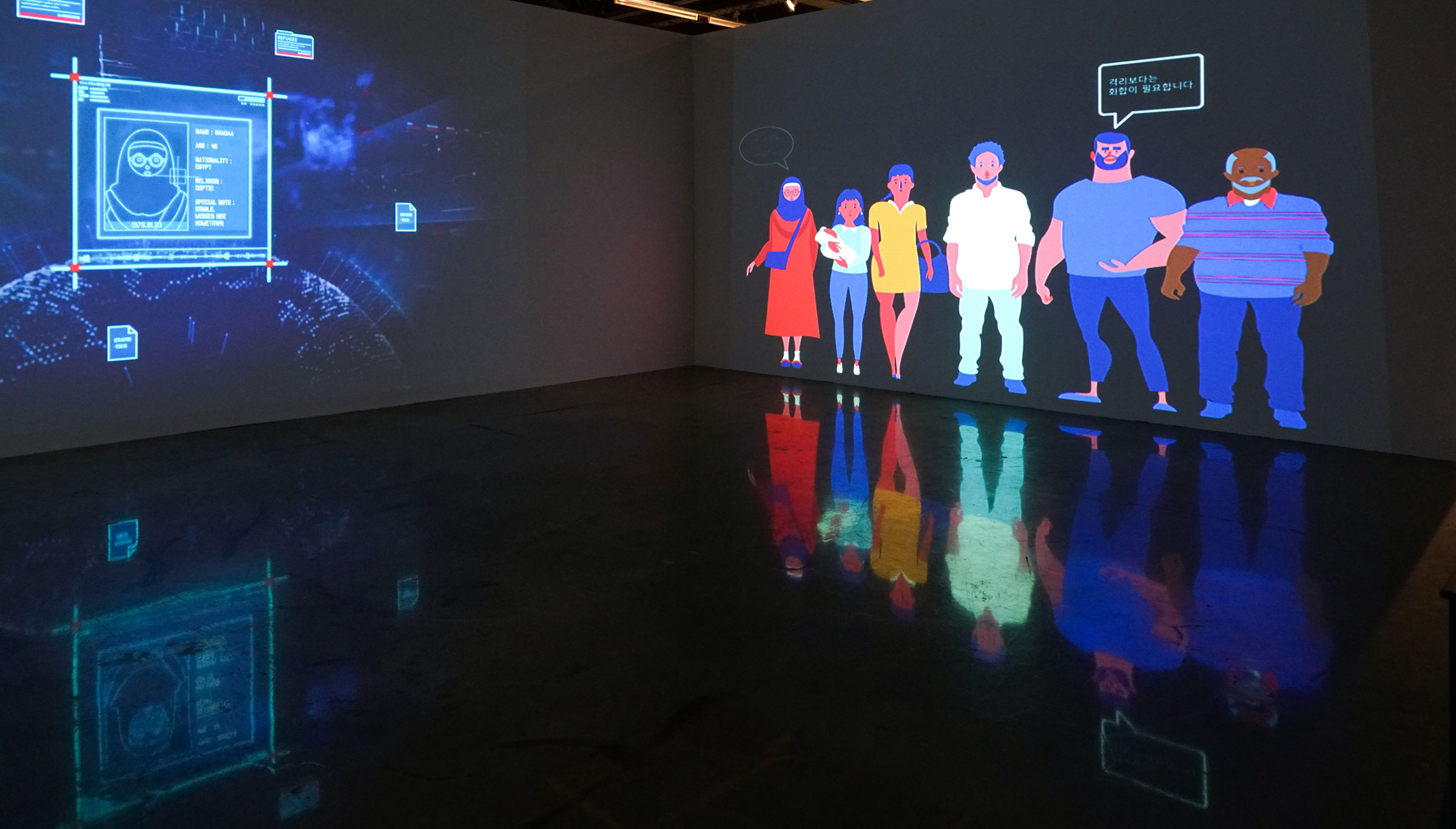 김찬중 전혀 다른 사회에 들어왔을 때 자신을 이해해줄 수 있는 커뮤니티에 소속되는 것이 심리적으로 안정감을 줄 수밖에 없다. 일단은 원해서 들어갔으리라고 보는 편이다. 문제는 다른 옵션이나 대안이 없기 때문에 그 커뮤니티가 울타리 없는 감옥이 될 수도 있다는 점이다. 정착 후 일정 기간이 지나면 다른 무언가를 더 찾고 싶어질 수도 있을 것이다. 커뮤니티라는 게 좋을 때는 좋지만 한 번 나빠지기 시작하면 정말 힘들지 않나. ‘빅데이터 셸터링’이라는 표현을 쓴 것은, 생활 패턴과 정보 데이터를 분석해 그 사람에게 잘 어울리는 또 다른 공간을 탐색하고 연결할 수 있는 가능성을 얘기해보고 싶었기 때문이다. 현재의 닫힌 커뮤니티 외에 다른 기회도 존재할 수 있다는 것을 알려 심리적 안정감을 준다면 새로운 사회로의 연착륙이 좀 더 쉽지 않을까 했다.