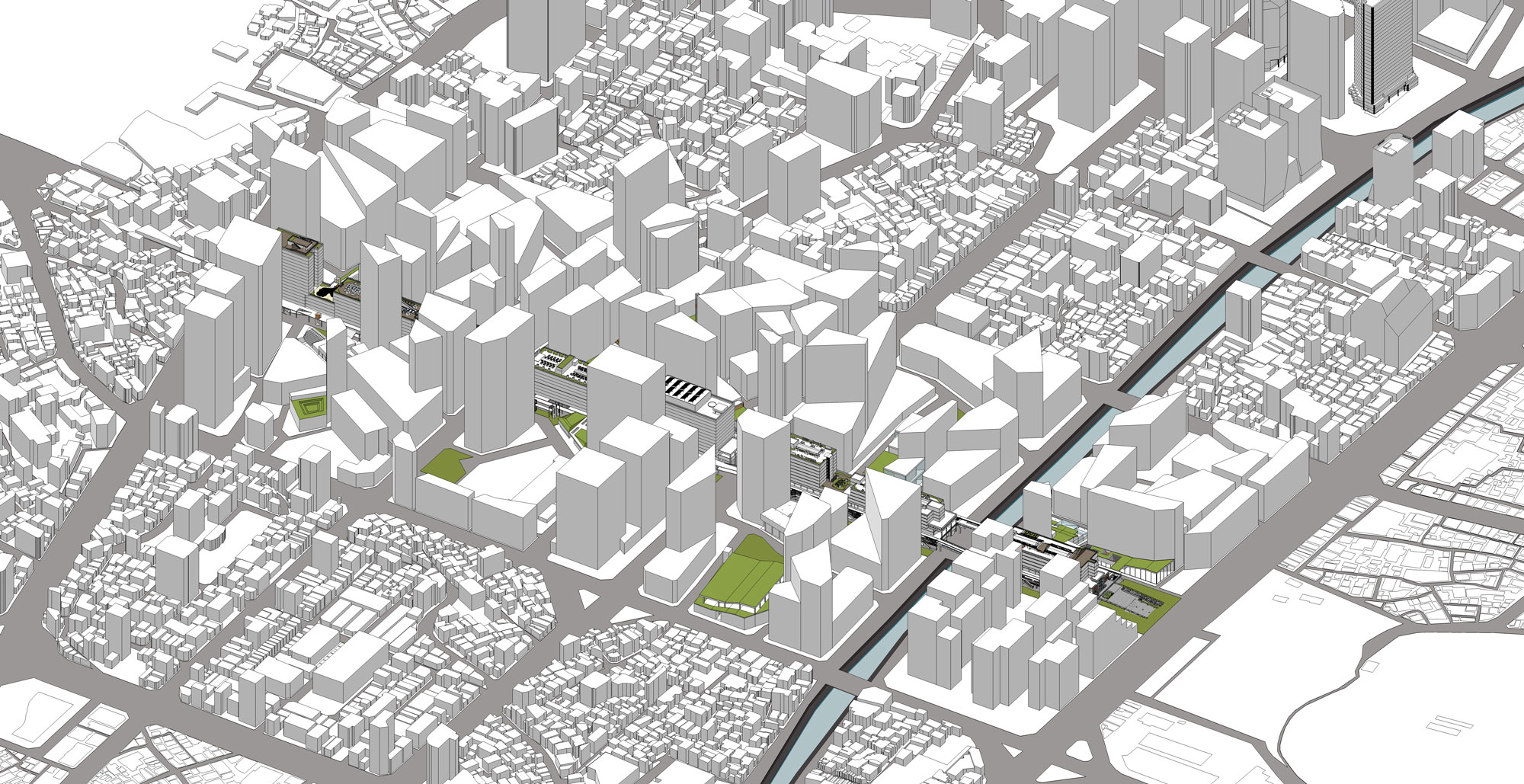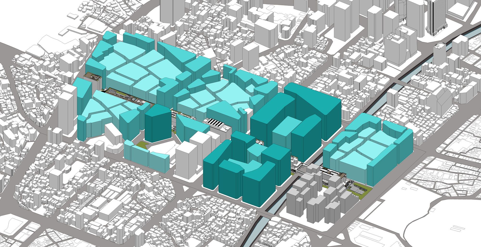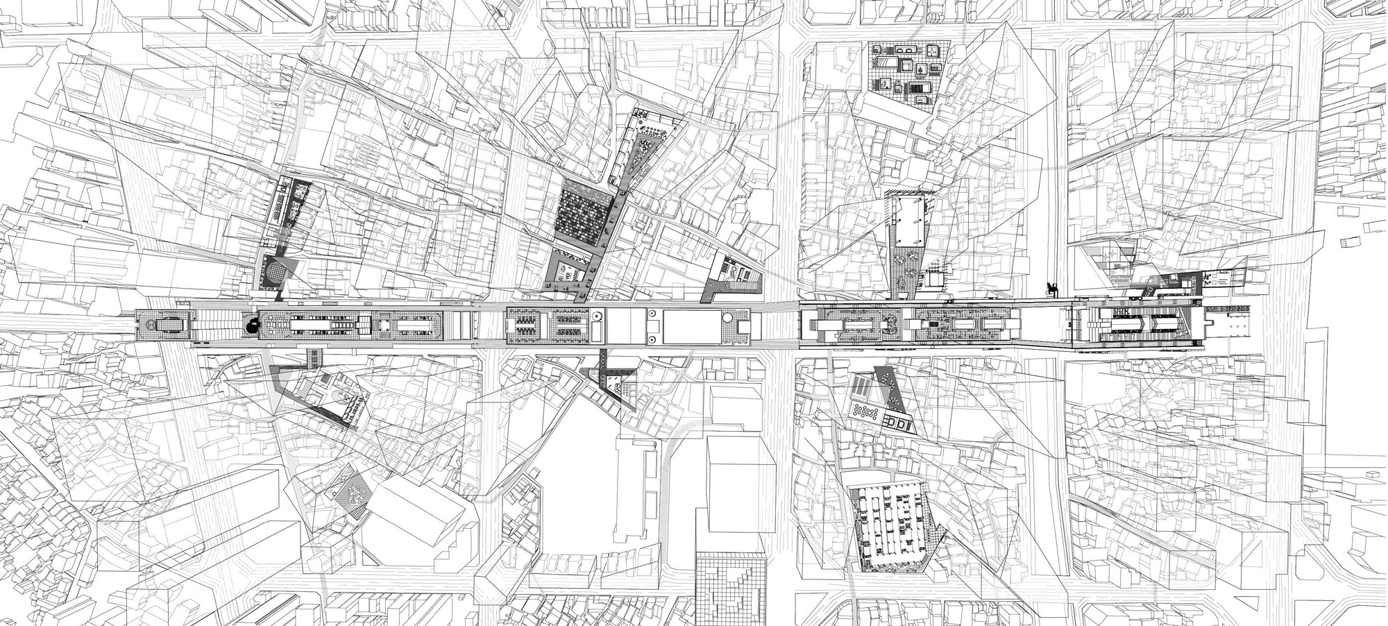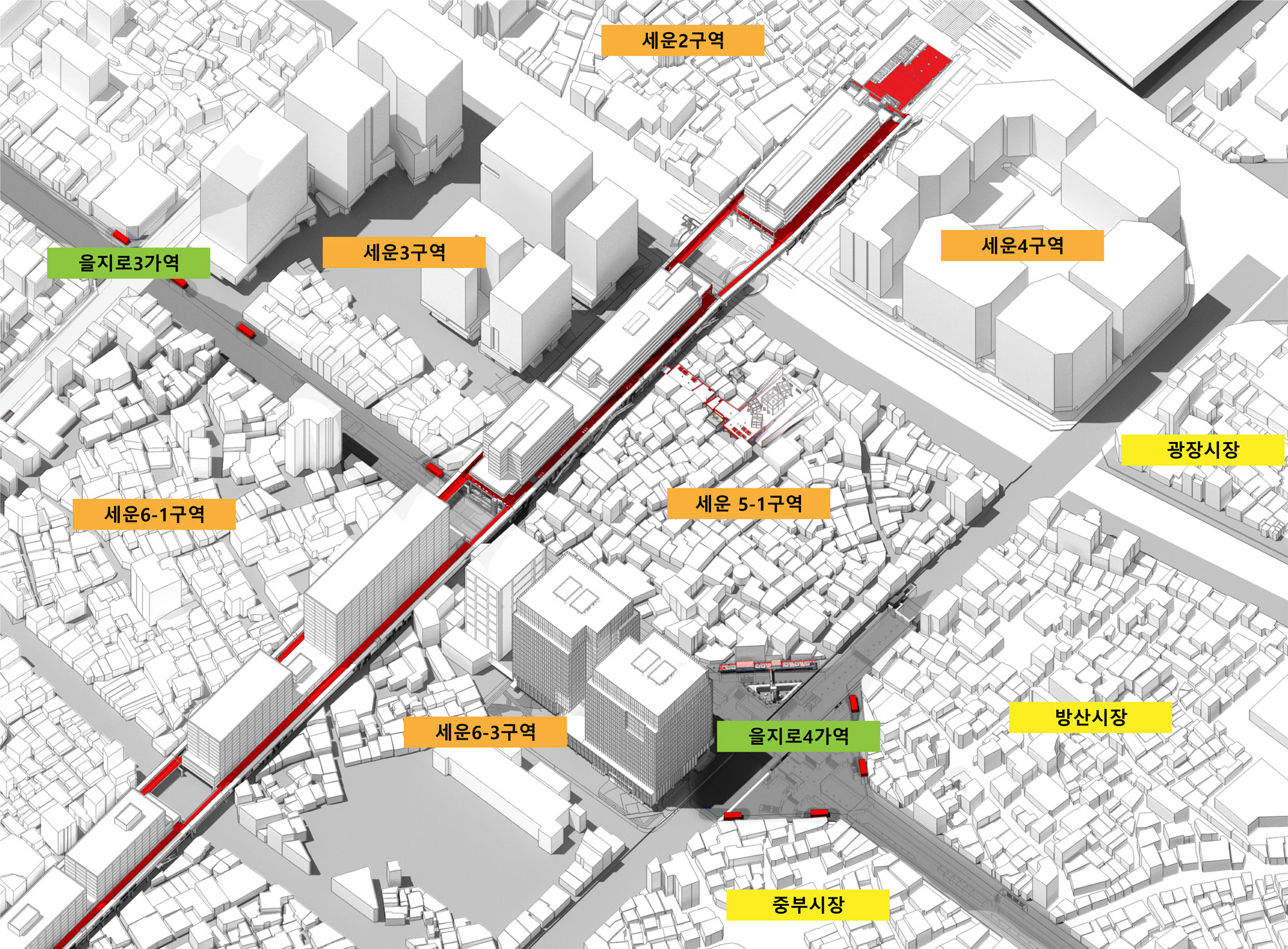 둘째, 기존의 용적률 인센티브 전략을 보완하기 위해 세운상가 보행데크와 을지로 지하보도 등 선형의 공공영역을 새로 만들어지는 주변 민간 개발영역에 적극적으로 관입시켜 세운상가 주변의 민간 개발영역이 세운상가의 공공영역과 밀접하게 상호작용하도록 유도한다.