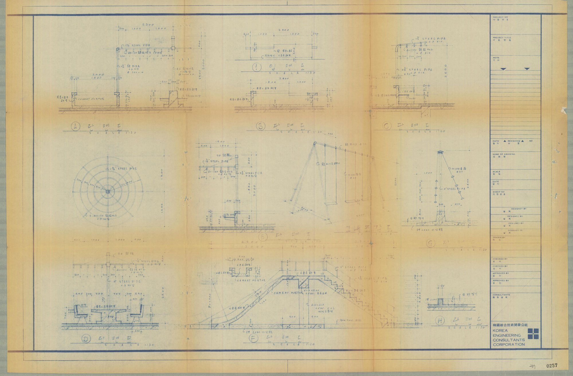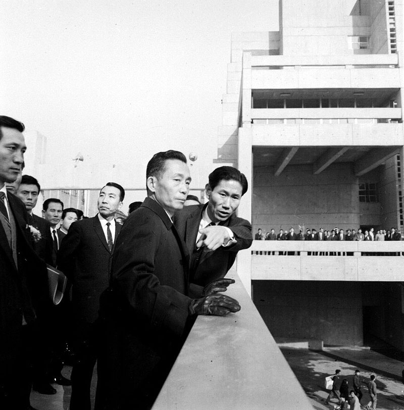 특히 김수근은 자신의 건축사사무소를 한국종합기술개발공사로 흡수시켜 공사의 부사장과 2대 사장을 역임하면서 더 적극적으로 ‘국가 산업화를 위한 관료 건축가’6가 된다. 그는 종묘 – 남산 간 재개발 계획뿐 아니라 여의도 종합개발계획과 영천 – 남대문 재개발지구 계획을 통하여 지속적으로 ‘인공대지’의 공간을 구체화해갔다.7 예컨대 공중보행데크 공간은 개인이 어떻게 도시 공간을 사용해야 하는가에 대한 문제를 다루었다. 공간 사용을 ‘소유가 아닌 점유’로 전환해 사적인 소유관계를 초월한 이상적인 공간을 만들고자 한 것이다.