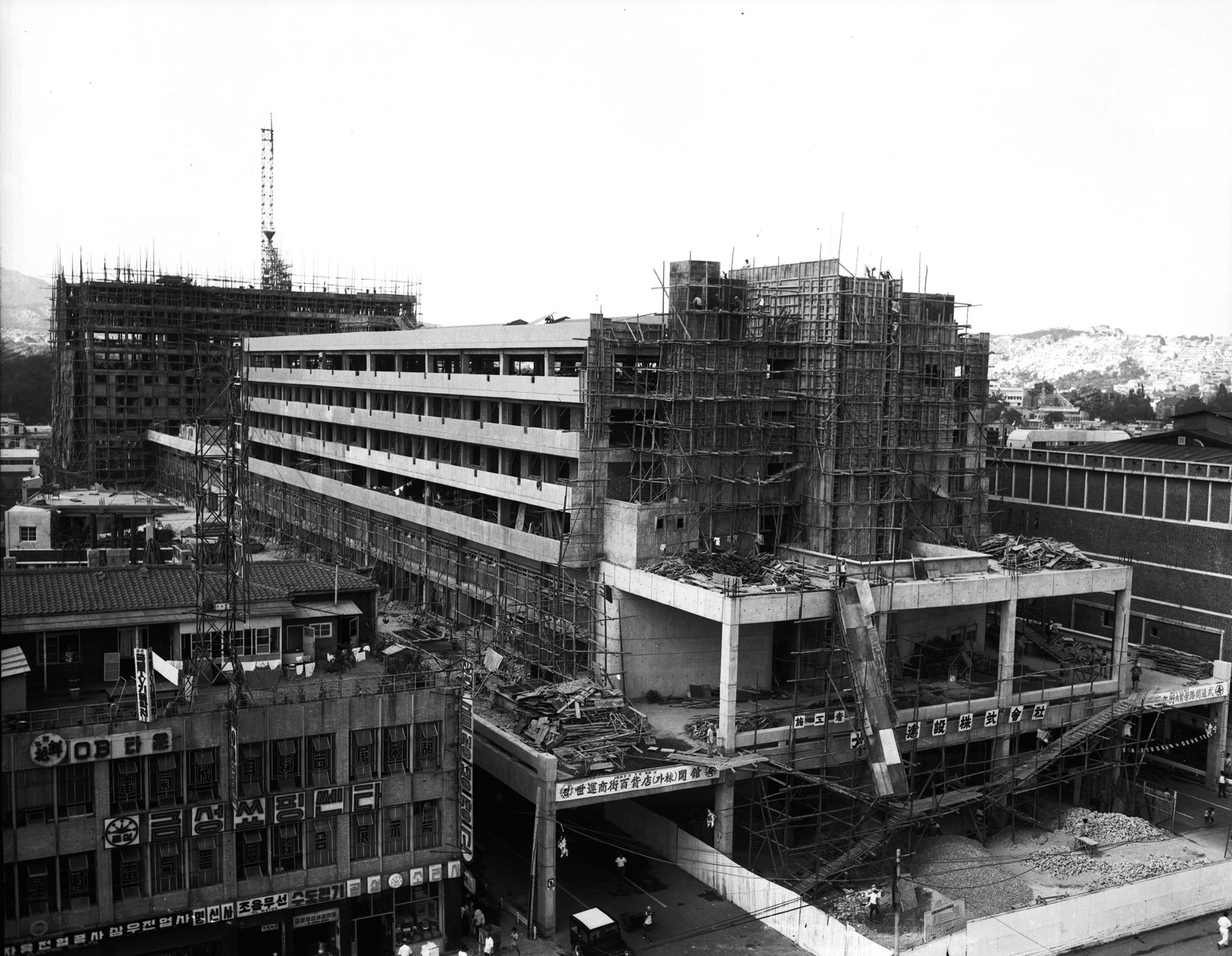 2차 세계대전 후 전쟁의 상흔이 남은 여러 도시들의 한편에서는 시민들이 삶을 이어가기 위해 소형 필지에 새로이 비공식적 주거를 지었고, 다른 한쪽에서는 행정가 · 정치가 · 기업가들이 필지를 대형화해가며 도시 재건을 꿈꿨다. 이러한 전후 도시의 상황은 아방가르드 건축가가 권위와 획일성에 대항해 시민을 위한 변화, 다양성, 자유의 문제를 재고하는 폭발적인 계기가 됐다. 특히 1960년대 메가스트럭처(megastructure)는 전후 프로젝트에서 공유된 대안적인 도시계획의 개념이자 특권적인 초국가적 건축의 흐름으로 평가돼왔다. 이는 영국 아방가르드 네오 퓨처리스트에게 ‘인간환경의 통합적인 디자인으로 거시적 레벨에서 (건축가의) 통제와 질서가 강조되는 반면 미시적 레벨에서는 (시민에게) 소비 · 여가 · 무질서의 자유가 제공되는 것’1이었으며, 일본의 메타볼리스트(metabolist)도 서구 건축가의 작업과 더불어 그 지구적 상황을 함께한 사회운동으로 중요하게 다루었다. 그러나 아시아의 발전국가 프로젝트를 메가스트럭처로 규정하는 것은 조금 더 복잡하다. 그 건축은 ‘서구에 보내는 메시지’2로 다소 압축되거나 오리엔탈리즘의 열망을 추구한 ‘파생적인 모더니티’로 다뤄지는 경향이 있다.