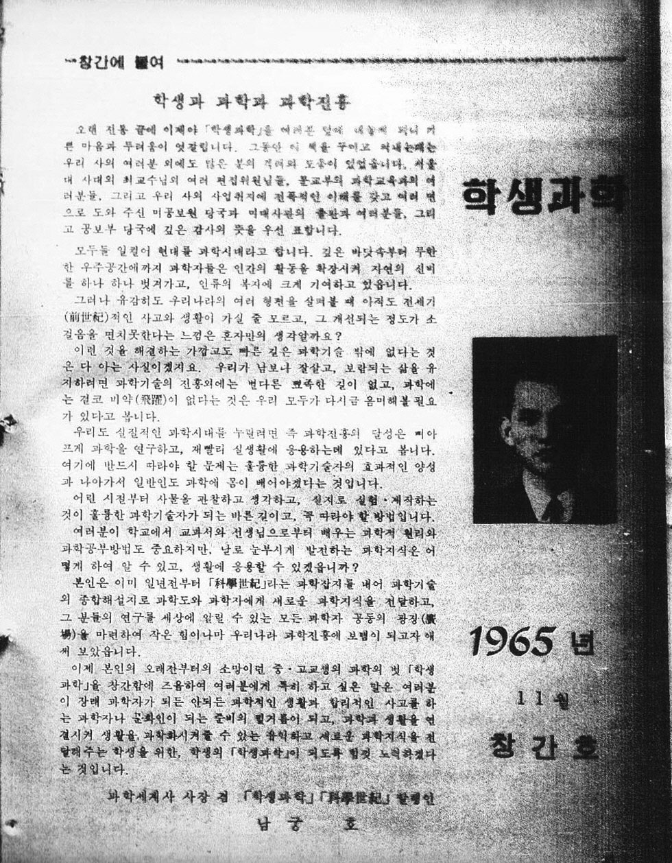 이 잡지의 사장 겸 발행인은 남궁호(現 메트로신문사 대표이사 회장)였다. 그는 연세대 물리학과를 졸업하고 24세에 과학세계사를 설립했는데,『학생과학』에 앞서 『과학세기』(1964년 8월 창간)라는 월간지를 발행하기도 했다. 과학세계사는 미국 공보원의 협조를 받아 1964년 12월 부터 공보원 2층 영사실을 빌려 ‘월례과학기술강연회’를 열었다. 이때 자주 초빙되던 강사가 박익수(1924 – 2006)다. 그는 『학생과학』의 초대 편집위원으로, 여러 매체에서 활발한 기고 · 강연 활동을 펼치던 과학평론가이자 정부의 원자력위원회 소속 위원이기도 했다. 이후 그는 과학기술처 원자력 발전계획위원회 위원장으로 일하면서, 한국 원자력산업회의 설립을 주도한다. 그의 대표 저서 중 하나가 『한국원자력창업비사』(1999)라는 점도 눈여겨볼 만하다.