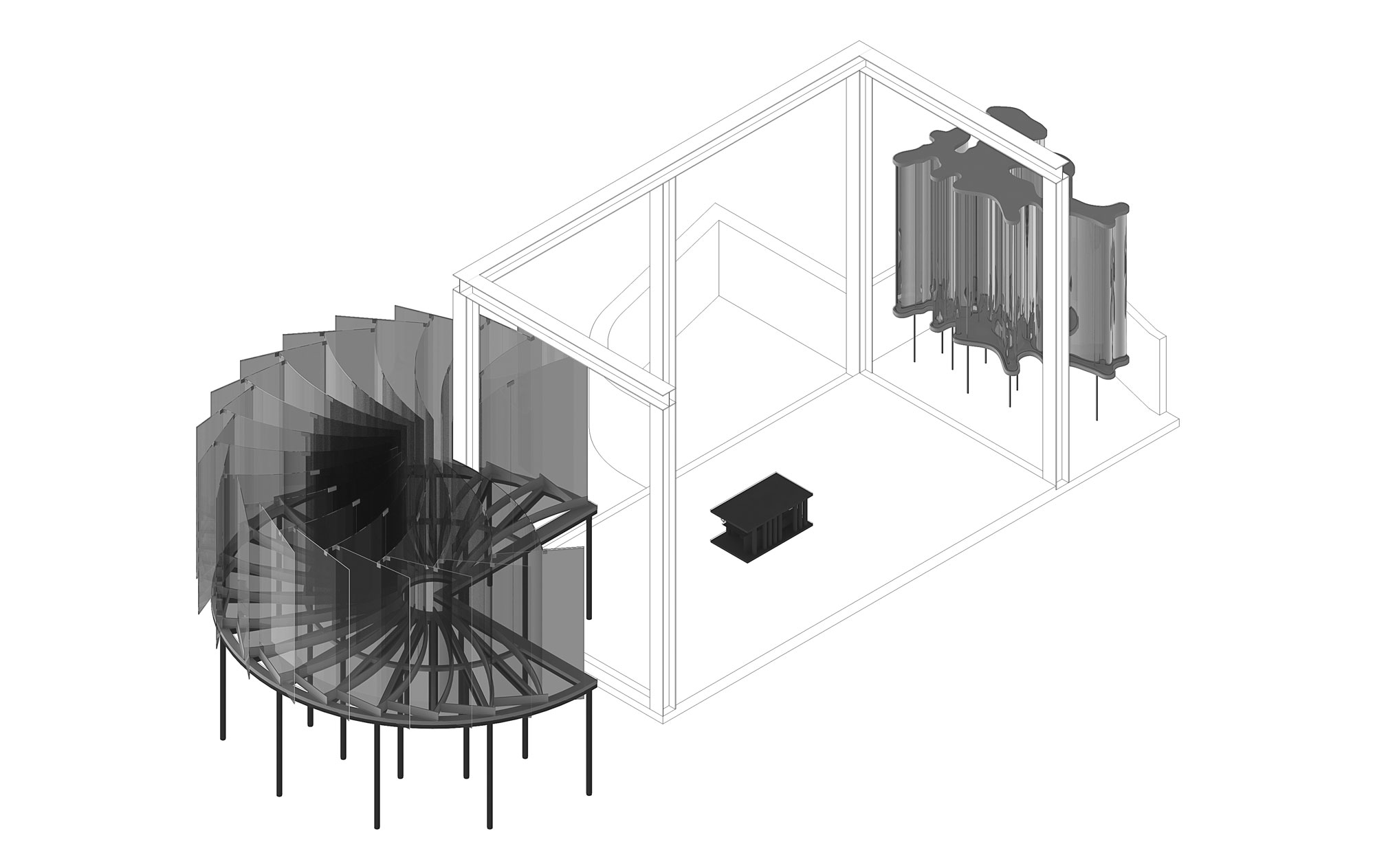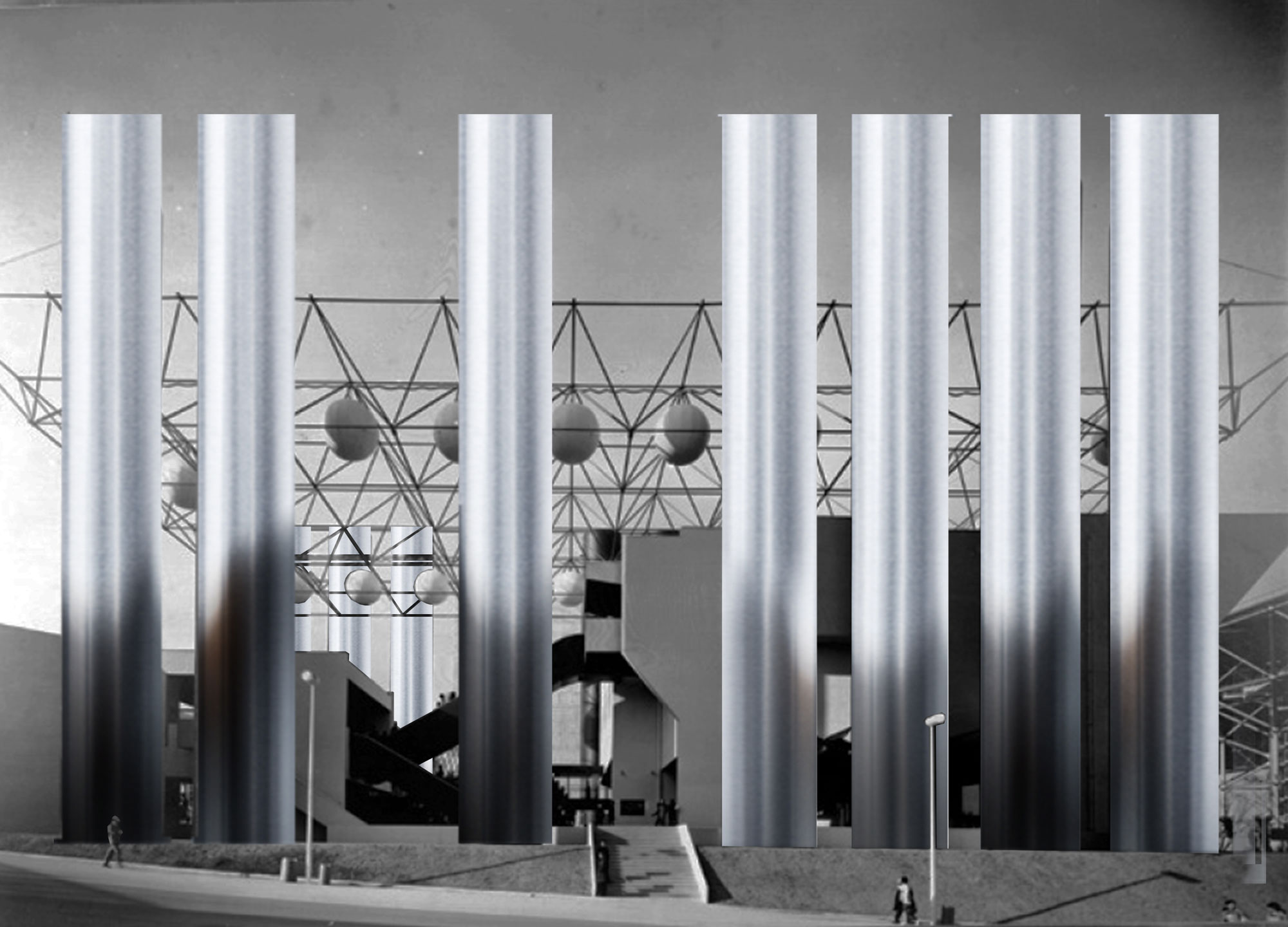 다른 관점에서 오브제는 축소된 건축 모형으로 읽힌다. 외부의 설치물은 내부의 엑스포70 한국관과 같이 ‘국가 프로젝트 건축’이라는 동일한 범주에 속하지만, 국가나 민족을 표상하는 직설적 상징주의와 견고한 서사로부터의 해방을 꿈꾼다. 이들은 자율성을 포기하는 대신에 주어진 맥락과 외부 환경 그리고 개별 내부 공간들이 동시다발적으로 형성하는 ‘상황’을 구조화하고 상연한다. 따라서 ‘느슨함’ ‘모호함’ ‘투과성’ ‘간섭’ ‘분위기’ ‘무드’ 같은 의미망을 가로지르는 우리의 작업은 다른 장소와 스케일, 프로그램에 유연하게 반응하며 적용될 수 있는 자유로움을 얻는다. 우리는 이렇게 구축된 현상 자체를 미디어로 보고, 이 미디어가 국가 프로젝트의 메시지가 되는 것을 상상한다.