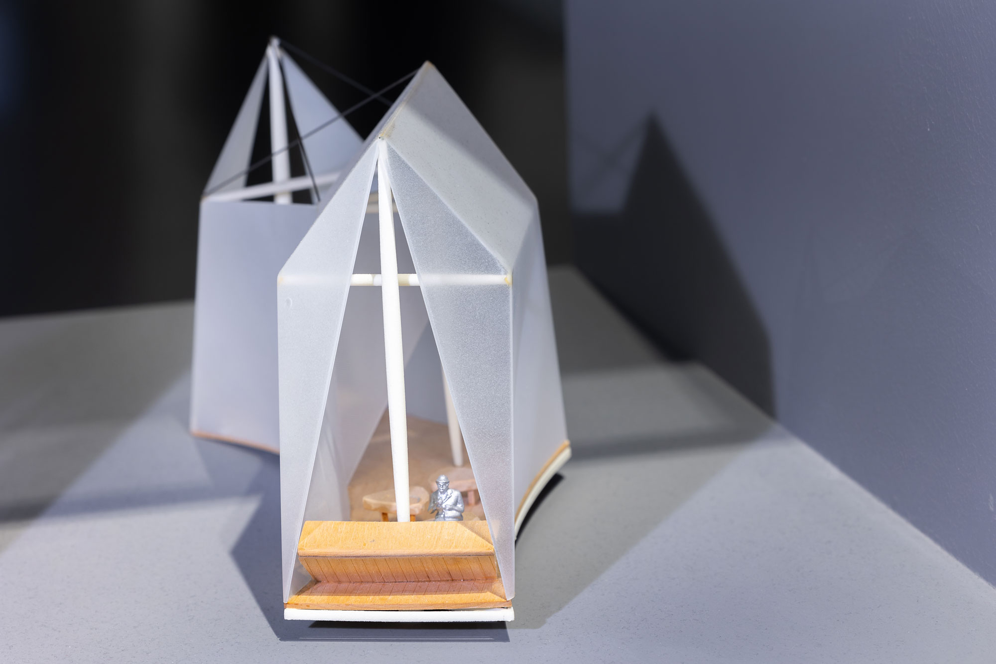 배윤경 제가 볼 때 노먼 포스터는 텐세그리티를 직접적으로 강조해서 쓰지는 않는 것 같습니다. 이탈리아 베니스 비엔날레 때 만든 파빌리온이 있거든요. 가운데가 철 부재였던 것 같은데요. 가운데 큰 막대가 있고 그 옆에서 당기는 케이블이 있어 천막 같은 구조입니다. 이런 형태를 보면 포스터는 벅민스터 풀러(Buckminster Fuller)와 케네스 스넬슨(Kenneth Snelson)이 시도한 것과 다르게, 텐세그리티를 가지고 무언가를 엄청나게 한 것은 아닌 것 같습니다. 뜻은 쉽게 말하자면, 천막 구조라고 보시는 게 더 좋을 것 같아요.