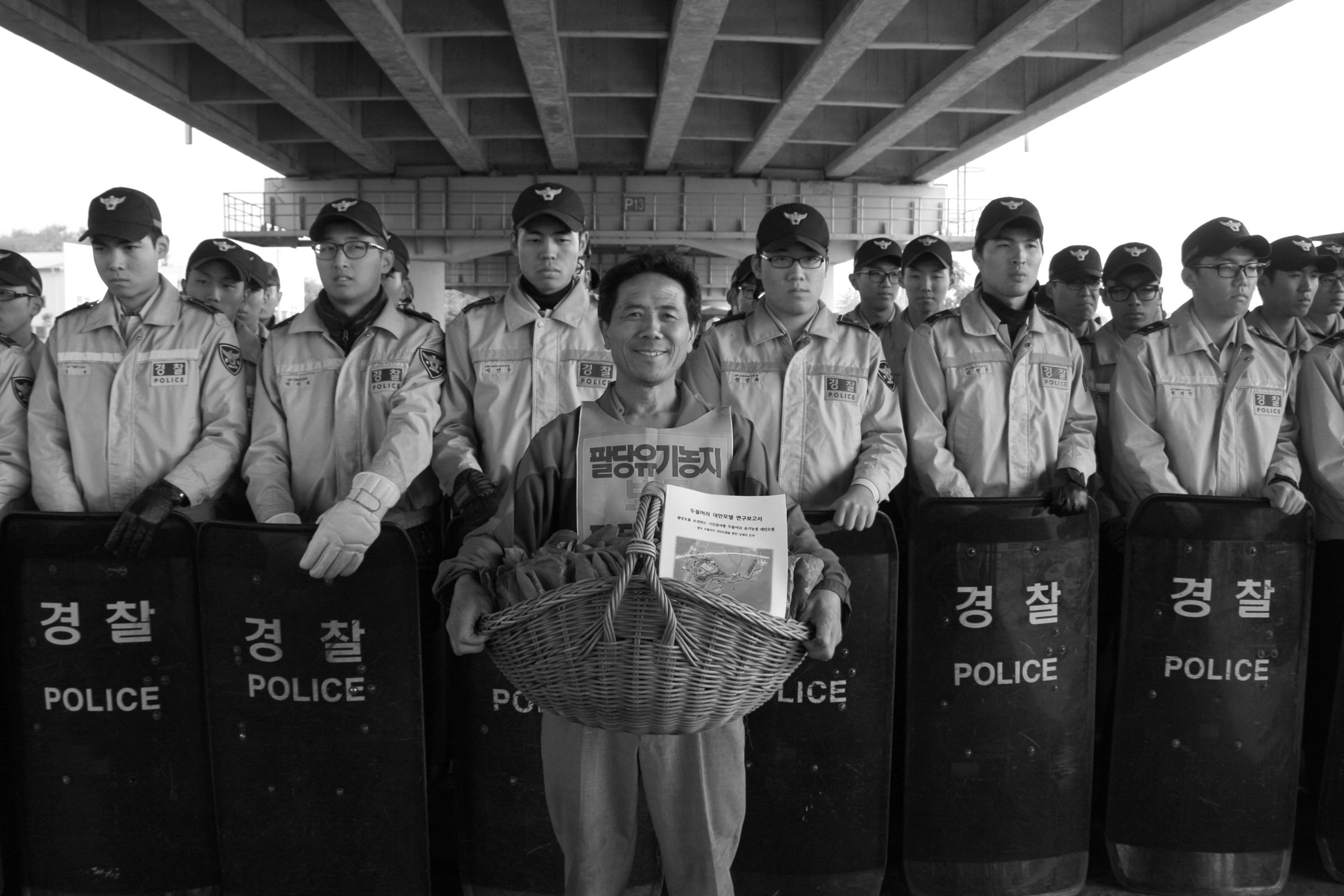 두물머리에서 물리적인 강제퇴거에 저항하는 한 농부, 2012 / 사진: 박은선