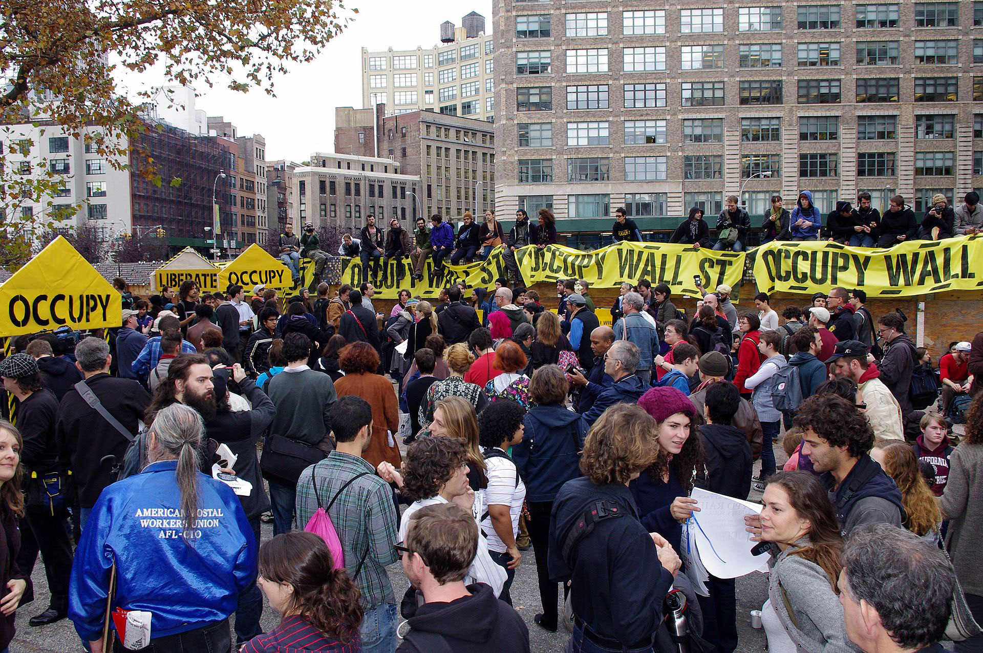 북미에서 점거의 개념은 그리스 학생들이 주도한 반란에 영감을 받아 2008년 캘리포니아와 뉴욕 내 대학 점거에서 유래한다. 뉴욕은 1980-90년대 무성했던 스쿼팅의 전통을 가지고 있지만 90년대 후반 보안이 강화되면서 무력화되었다. 점거가 불법점유와 다른 점은 후자가 사유재산이나 토지를 (반)영구적으로 탈취하려고 하지만, 전자는 탈취에 있어서 잠정적 융통성과 공간적 이동성을 우선시 한다는 것이다. 불법점유가 최소한 지금 뉴욕에서는 불가능하다는 것도 인지해야 한다. 반면 세계적으로 ‘점거’의 지역적 개념화는 2009, 2010년과 2011년 카이로, 바르셀로나, 아테네 등지의 도심 광장을 대대적으로 점령했던 국제적 반란의 새로운 흐름에 의해 극적으로 강화되었고 그 후 점거의 행위는 뉴욕에서 북미로 번져나갔다.