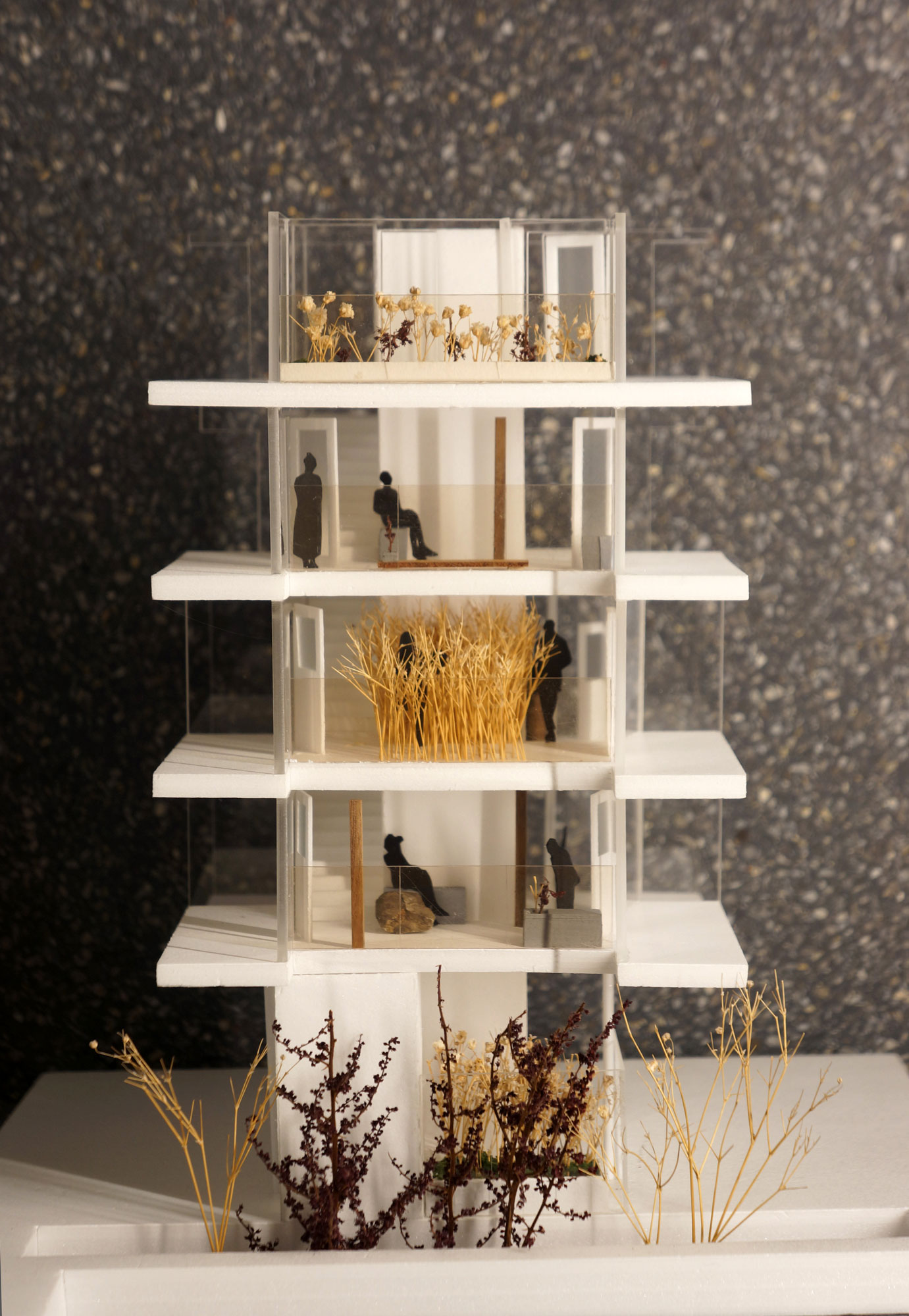 우리는 관계의 양과 질을 증진하고자 서로 어떤 관계일지, 어떻게 느낄지, 무엇을 하고 있을지 등을 파악해 상황에 따른 적절한 거리를 설정하고, 건축적 장치를 통해서 옆집과의 관계를 다양하게 연결하는 실험을 진행했다. 두 사람 사이에 생기는 거리감은 공간화된 관계성이다. 각 영역의 분절과 연결의 정도에 따라 각양각색의 관계가 생겨난다. 공용공간에 의한 개별 공간 사이의 관계성도 중요해진다. 공동주택 안에서 수평, 수직으로 연결되기도 하고 나뉘기도 하는 공간의 가능성을 확인하고자 한다.