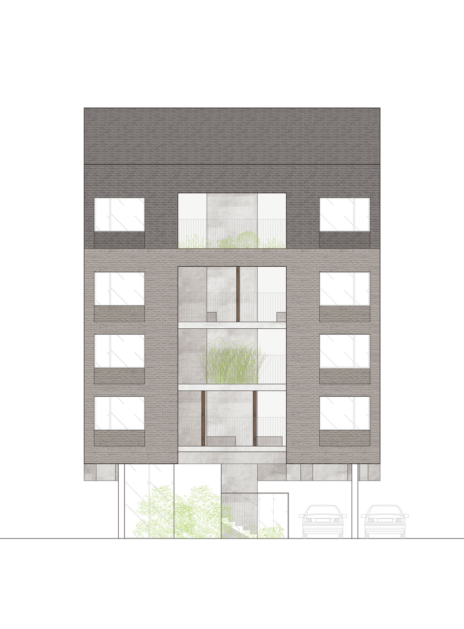 공동주택의 개개인이 각자 집에서 필요로 하는 것 중 일부는 공동 영역에서 함께 사용하도록 유도한다. 주로 개인 영역에 놓는 세탁, 샤워, 주방 등을 함께 사용하는 지하공간에 놓도록 제안한다. 이를 통해 커뮤니티가 자연스럽게 생기기도 하고, 혼자 사용할 때보다 나은 혜택을 누릴 수 있다. 지하공간 일부를 공용공간으로 열고, 지층부와 저층부에 입주민들이 적극적으로 대면할 수 있는 공유공간을 만든다. 이런 장치들을 통해 개인이 소외되지 않는 공동체 주택을 제안하고자 한다.
