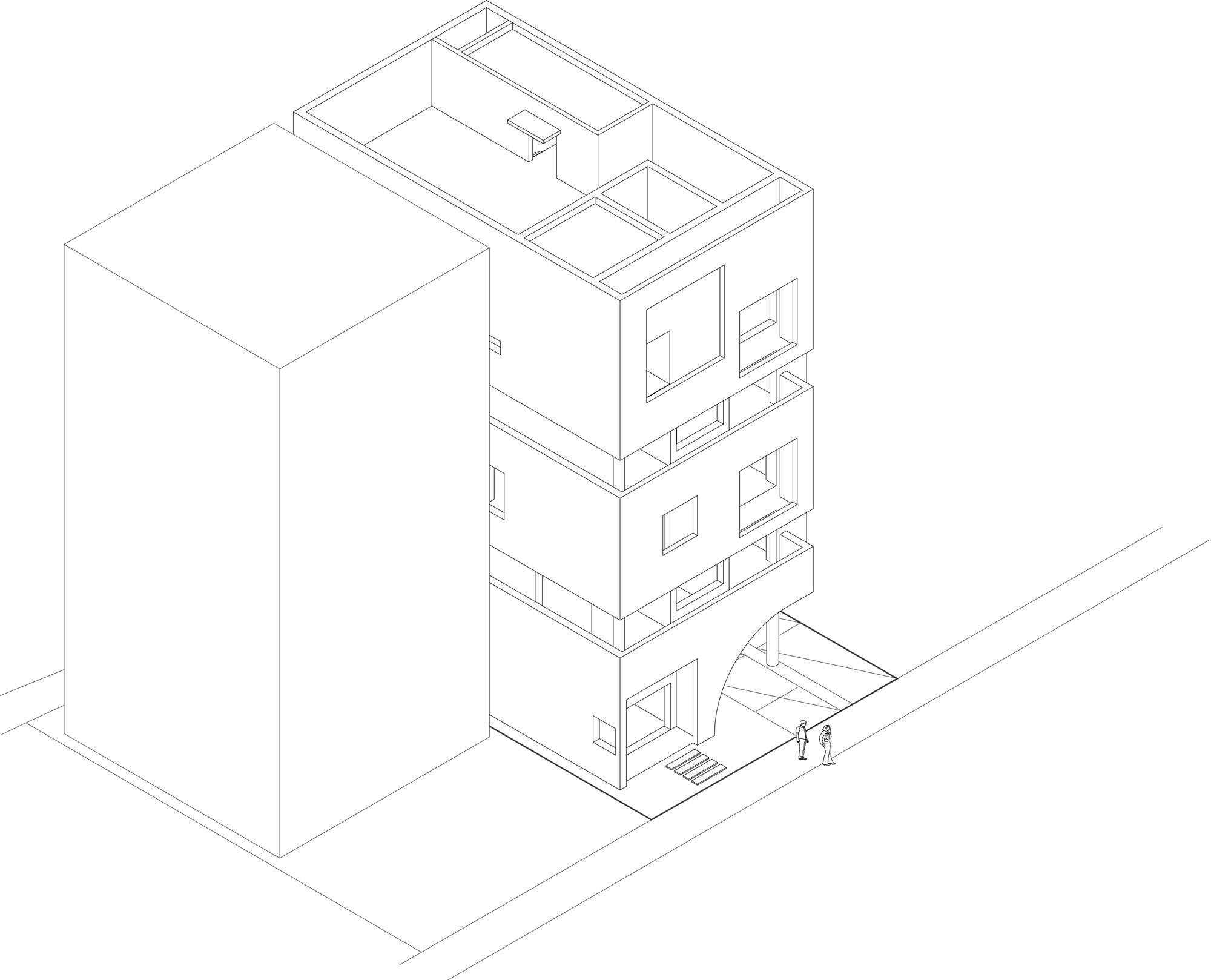 지금은 주로 상가주택 중심으로 작업을 이어가고 있다. 성격이 다른 두 프로그램을 분리하고, 주변과 관계 맺는 과정 속에서 볼륨을 조합하게 된다. 우리는 건축물을 사용하는 이들에게 볼륨의 조합 속에서 넘나드는 움직임을 통한 새로운 경험을 선사하고 싶다.