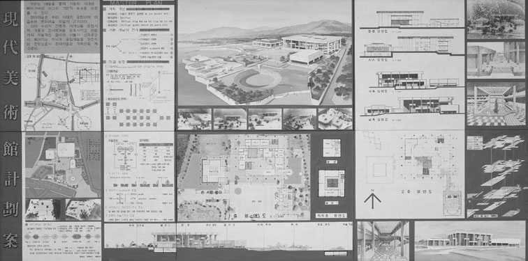 국립현대미술관의 첫 번째 건축 소장품은 김정신, 이윤, 김장열, 정동명, 한상훈의 1978년 작 현대미술관 계획안으로 국립현대미술관 소장품에 건축 부문이 신설된 1979년 처음으로 수집된 작품이다. 목판에 아크릴로 그린 이 작품은 1978년 제27회 국전 건축 부문에 출품한 패널로 문화공보부 장관상을 받았다. 이 작품은 다른 수집 기준을 만족시키지 못하고 국전의 혜택을 직접적으로 받았다고 볼 수 있다. 이 사실은 건축 소장품 수집의 맥락 및 정책 방향과 작품 자체의 가치 판단이 국전이라는 제도에 전적으로 기댈 수밖에 없음을 보여준다. 즉 수집 가부를 가늠하는 내적 가치 판단 기준을 확보하지 못한 건축 부문 소장품은 이후 소장품 수집 체계가 안정화된 이후에도 미술관에서 개최된 전시를 계기로 간헐적으로나 수집되었다. 1990년 《건축가 김수근》을 통해 수첩 형식으로 제작된 드로잉 4점이, 2002년 《올해의 작가: 승효상》을 통해 최가철물점 전시에 출품했던 가구가, 2013년 《그림일기》를 계기로 정기용의 무주프로젝트 드로잉이 수집되었다. 이처럼 국립현대미술관 건축 소장품은 매우 비정기적으로, 개인전 혹은 회고전 개최라는 미술관 내부 인준을 거친 후에야 비로소 제도 내부로 진입할 수 있었다. 건축 작품에 대한 건축사적 가치나 구축성, 실험성 같은 건축 내부의 언어로는 작품의 수집 근거를 획득하기가 어려웠던 것이다.