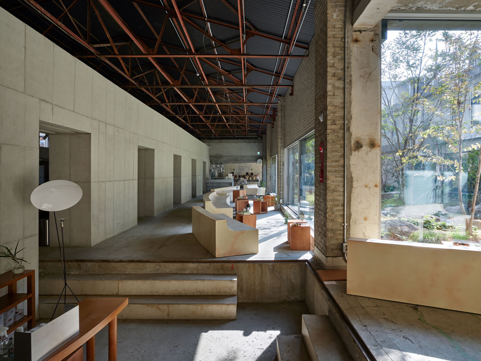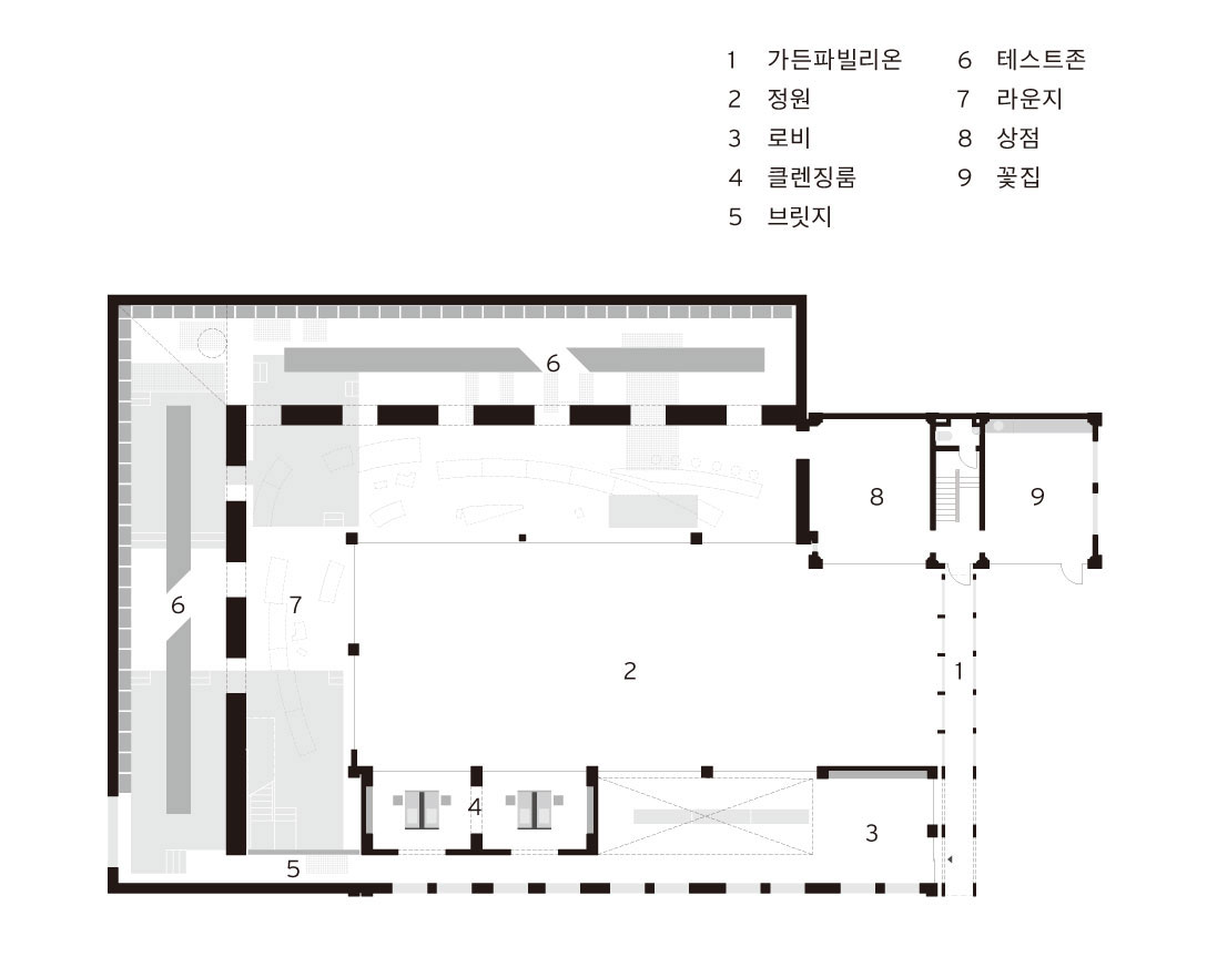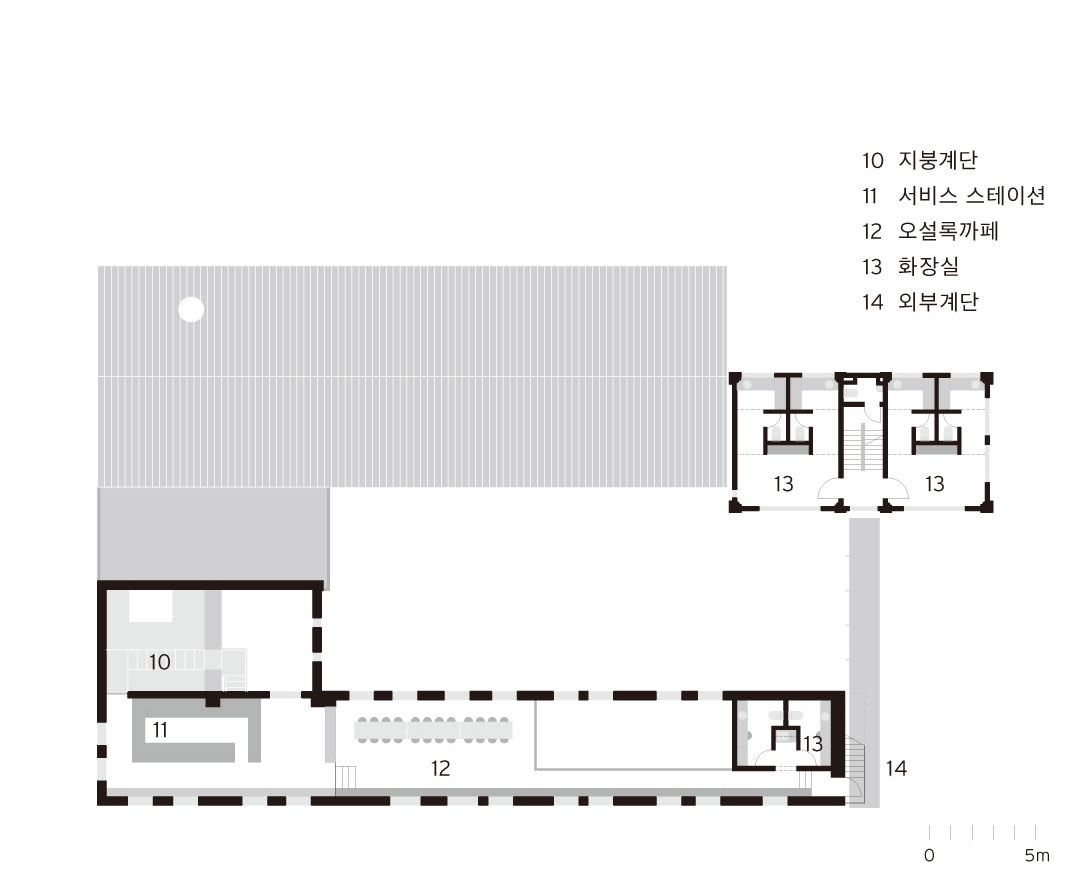 • 내부마감: 수성페인트(기존마감), 바닥면 폴리싱, 노출콘크리트, 시멘트벽돌, FRP그레이팅