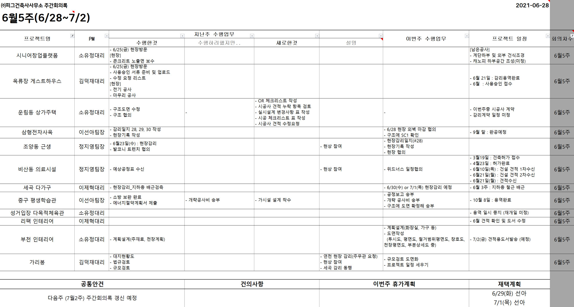 이주한 개소 이후 가장 아쉬웠던 점은 우리의 데이터베이스가 없다는 것이었다. 우리가 많이 경험해보지 않은 용도의 건물을 설계할 때, 관련 법규를 검토하긴 하지만 어떤 법규는 존재조차도 모른 채 담당 관청에 허가를 넣는 경우가 있다. 때론 공무원에게 배우기도 하고, 좌충우돌하며 찾아간다. 그런 과정이 재미있기도 하나, 결코 편하거나 쉽진 않다. 그리고 그걸 팀원에게 일일이 챙기라고 강요할 수도 없다.