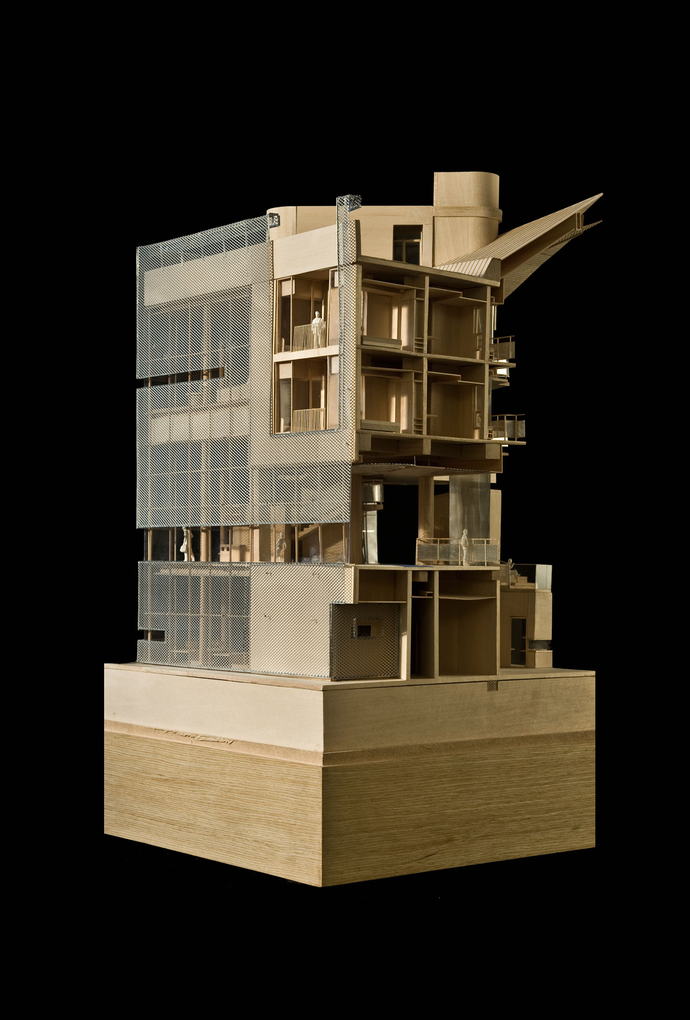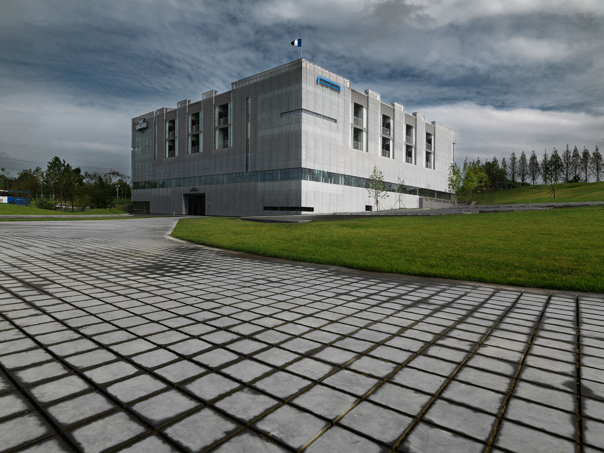 건물의 네 모서리는 정확하게 동서남북을 가리키고 있어 4면 모두 일 년 내내 충분한 채광이 가능하다. 기능성 외피인 알루미늄 익스팬디드 메탈은 여름의 높은 태양광은 걸러내고 겨울의 낮은 태양광은 실내로 유입한다. 높은 공극률을 가진 이 외장재는 날씨, 태양의 방향, 그리고 관찰자의 시점에 따라 끊임없이 변화하는 섬세하고 다양한 미학을 만들어낸다. 비행기 격납고를 연상케 하는 건물 남동면의 거대한 슬라이딩 벽은 자연 환기를 극대화하기 위한 공극률 밸브의 성격을 갖는다.