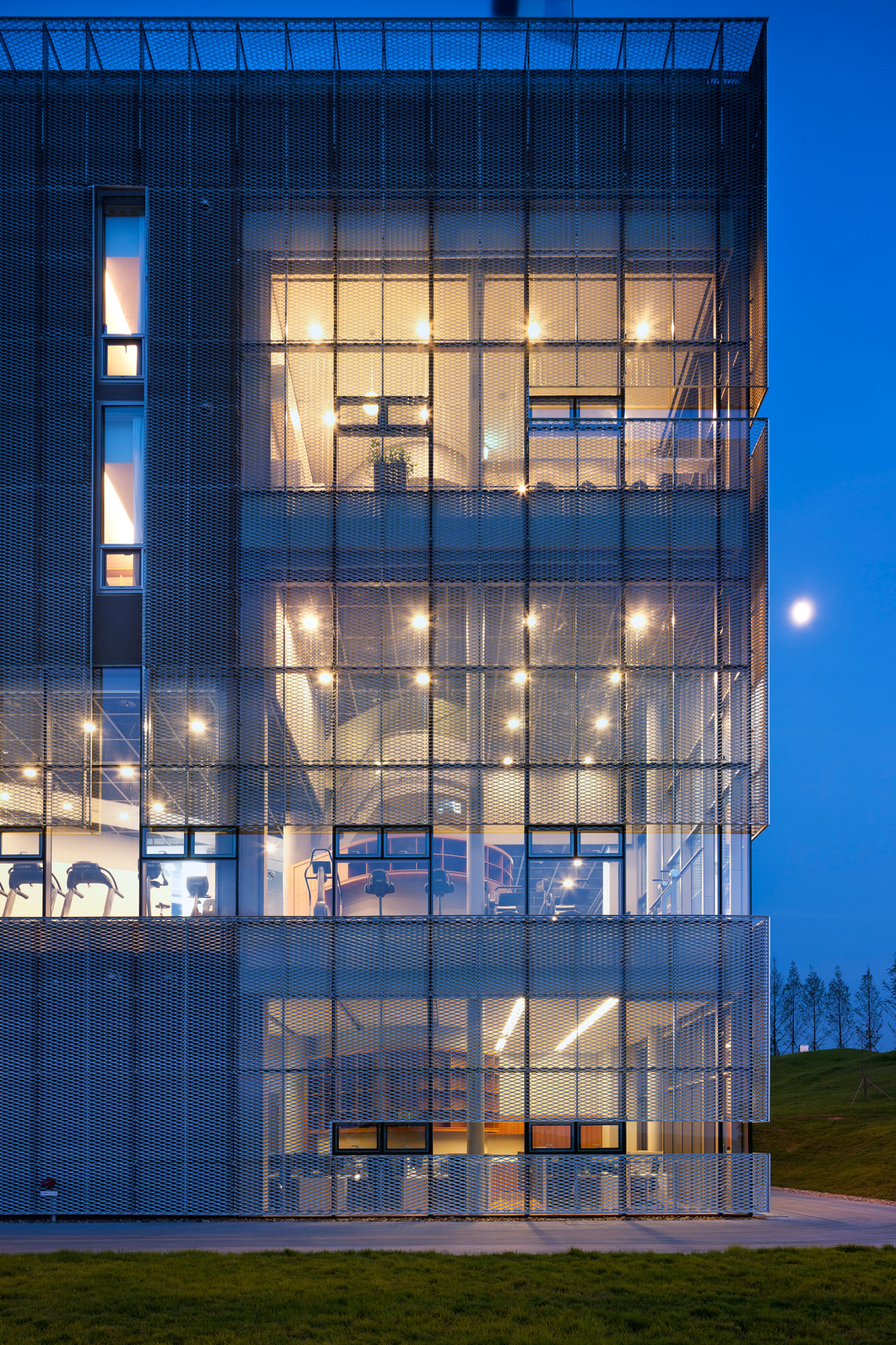 기능성 외피인 알루미늄 익스팬디드 메탈은 여름의 높은 태양광은 걸러내고 겨울의 낮은 태양광은 실내로 유입한다. / 사진: 박영채