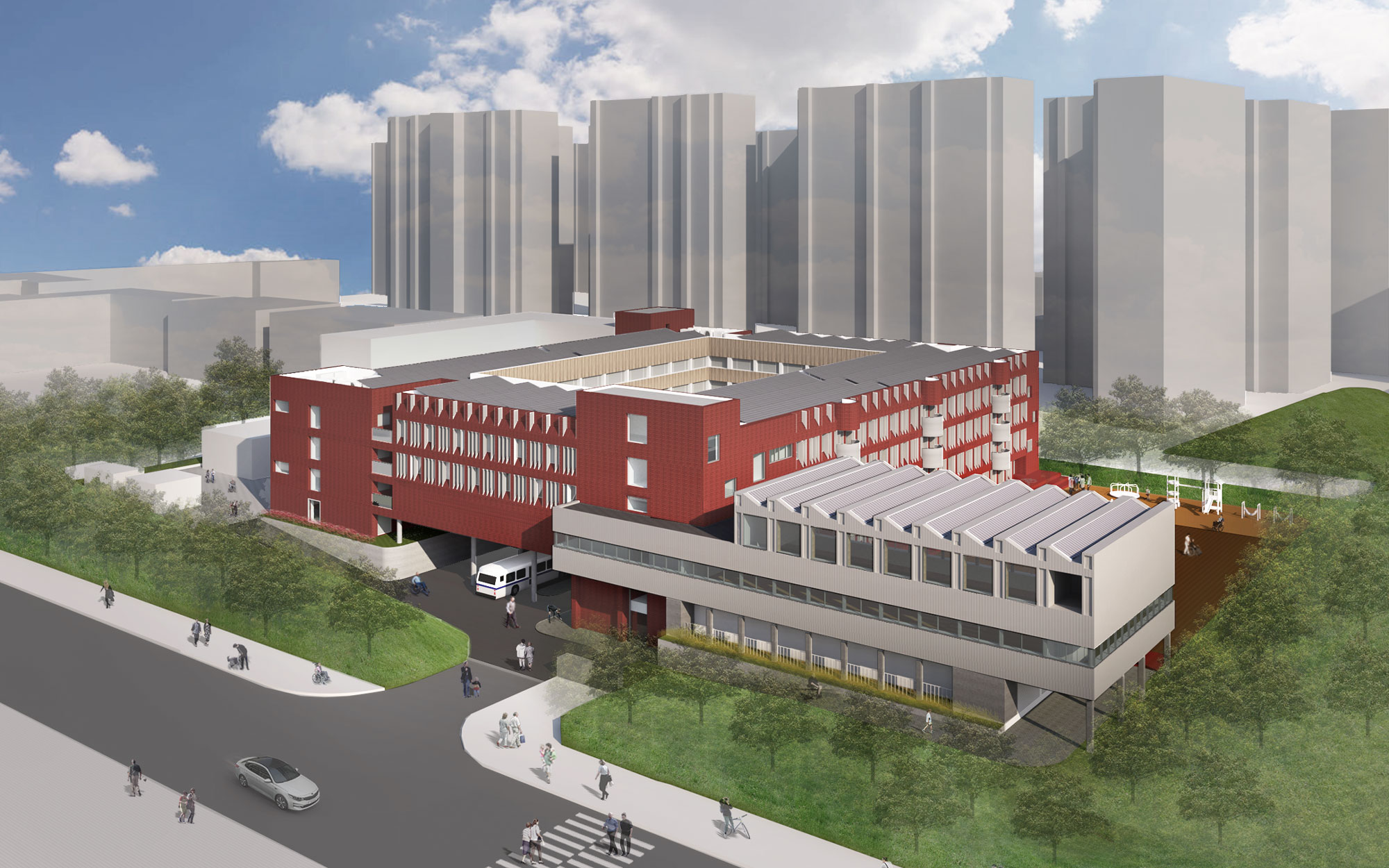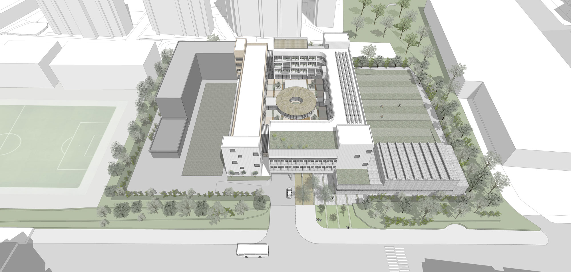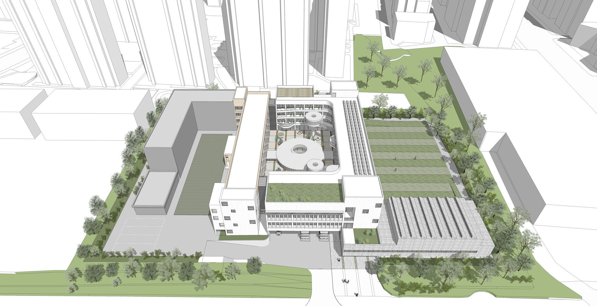 2017년 우리가 설계공모에 참여하기 이전에 서울시 교육청에서 공공 건축 사전 검토 연구 용역으로 보고자료를 만들어 두었다. 앞쪽은 특수학교를 만들고 뒤쪽으로 지역 공공복지시설을 만드는 것이 프로젝트의 큰 틀이었다. 우리의 안이 당선된 후 교육청에서 받은 자료는 당선안과는 다른 방향성을 가지고 있었다. 2017년 7월에 설계공모가 진행되고 9월 21일에 결과가 발표되었는데, 공모 초기 설계안 요구사항에는 초등학교가 없었고, 예비교실 6개가 전부였다. 초등학교가 포함되면 규모가 커지면 지역주민의 반대에 대한 부담이 되기 때문에 우선 예비교실로 공실을 두고, 중・고등학교만 만들고자 했던 것으로 안다.