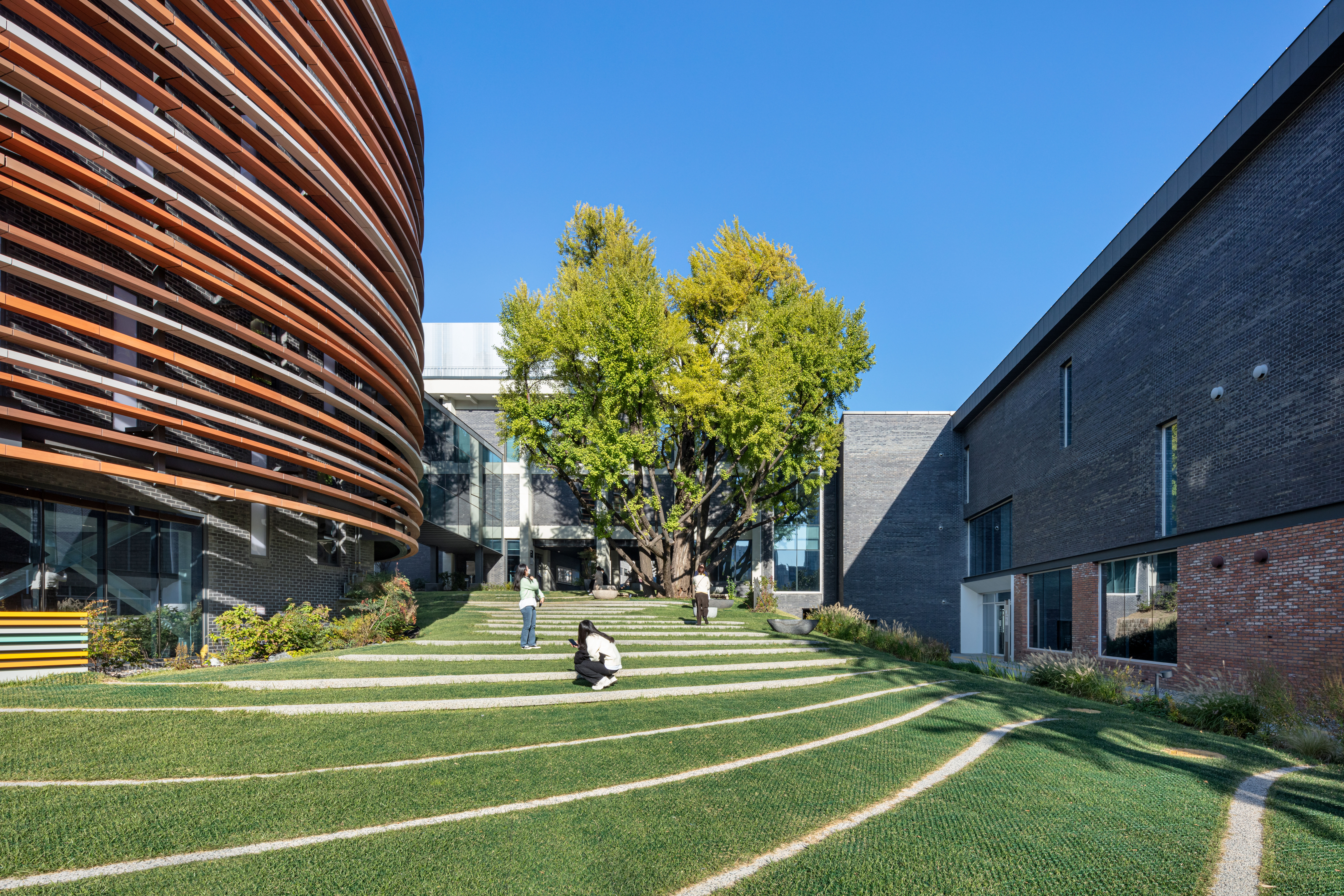 설계공모 당선안의 배치도에서는 월대의 존재감이 훨씬 강하고, 은행나무를 중심으로 한 후정을 볼 수 있다. 담장도 부분적으로 열어 외부에서 은행나무까지 직접 연결했다. 하지만 최종 디자인에서는 월대가 축소되고 후정이 유기적으로 바뀌면서 담장도 앞쪽만 열렸다. 시공 도중 후정에서 정화조가 발견되어 대지 레벨을 불가피하게 조정해야 했기 때문이다. 하지만 대지를 경사면으로 처리하게 되면서 장애인의 접근성이 훨씬 좋아지기도 했다.