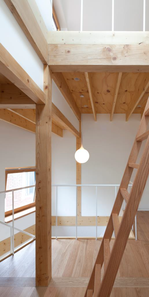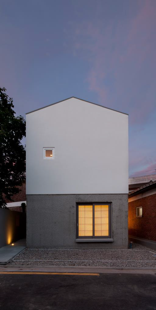 (특정한 전환의 시점을 잡기 어려워서 세 개의 작업을 골랐다.) 먼저, J스튜디오하우스, 연희동의 작은 집이다. 한 층 면적이 10평 정도로, 2개 층과 다락으로 구성된 집이다. 작은 집이라서 전이공간은 만들 수 없었고, 공간을 그냥 병치하고자 했다. 전혀 다른 두 공간이 같이 있을 때 어떤 긴장감이나 재미를 주지 않을까 생각했다. 1층은 철근콘크리트구조에 내단열을 하고 콘크리트 치핑으로 표면 마감을 했다. 2층은 목구조로 풀었다.