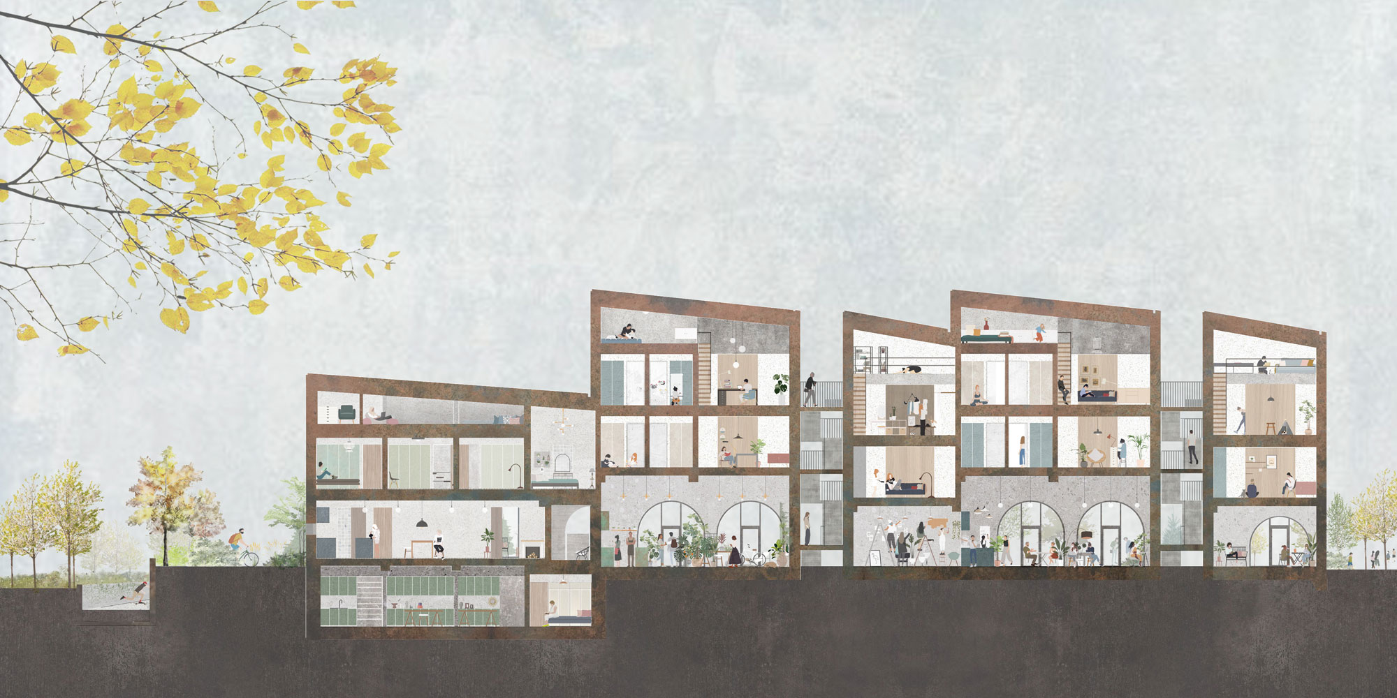 그리고 요즘 건축 시장 변화는 양극화되는 경향이 있어서 한쪽에서는 다양해지는 라이프 스타일을 따라 다품종 소량 생산에 대한 니즈가 분명해지는 반면, 부동산 상품으로서의 아파트 수요는 여전하다. 아파트 시장은 절대 위축되지 않고 오히려 굳건해서 아파트 설계를 하는 건축사사무소의 규모도 양극화 혹은 다양화 되어있다. 내가 실무 할 때만 해도 30~50명 규모 사무소가 있었는데, 요즘은 10명 이하거나 100명이 훌쩍 넘어가는 경우가 많다. 이런 상황에서 우리는 주거 건물 작업에 일정 수준의 보편성을 가질 수 있는 해법을 담아보려 노력하고 있다. 예를 들어서 도심형 다가구 주택에서 우리가 제안한 유형이 확대 재생산될 수 있는 여지가 있을지 실험한다.