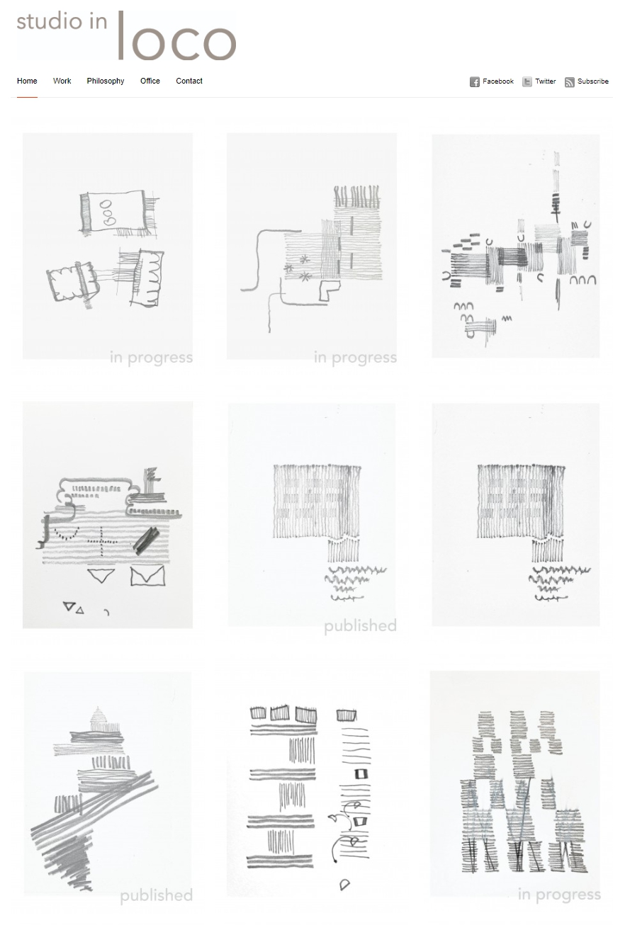 강승현 사무소 홈페이지를 구축한 초기에 각 프로젝트의 대표 사진을 섬네일로 모아보니 작업이 각양각색이었다. 홈페이지가 사무소의 인상이 되므로 건축가는 자기 작업을 어떻게 보여줄지 고민하고, 우리도 마찬가지로 지속적으로 생각한다. 김 소장이 지나간 프로젝트를 다시 이미지화하면서 각 작업의 개념이나 구성의 핵심을 간략하게 스케치한 것이다.