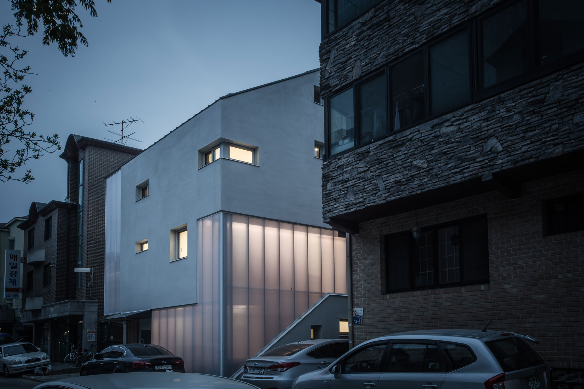 정발산 프로젝트는 주어진 환경이 열악했다. 그걸 디자인적으로, 계획적인 이슈로 해결하기 위해 많이 고민했었다. 일반적인 다가구 주택이 왜 열악한 환경에 놓일 수밖에 없는지를 고민해보니 창을 열 수 없고, 복도가 너무 좁고 어둡다. 이런 점을 개선하기 위해서 집마다 열 수 있는 창이 최소한 하나씩 있을 수 있게 계획을 했다. 또 복도에 폴리카보네이트 단파론을 써서 각자의 집으로 가는 길이 아늑하길 바랐다. 이 공간의 조명을 켜면 동네를 밝히기도 하니, 긍정적인 역할을 할 수 있지 않을까 생각했다.